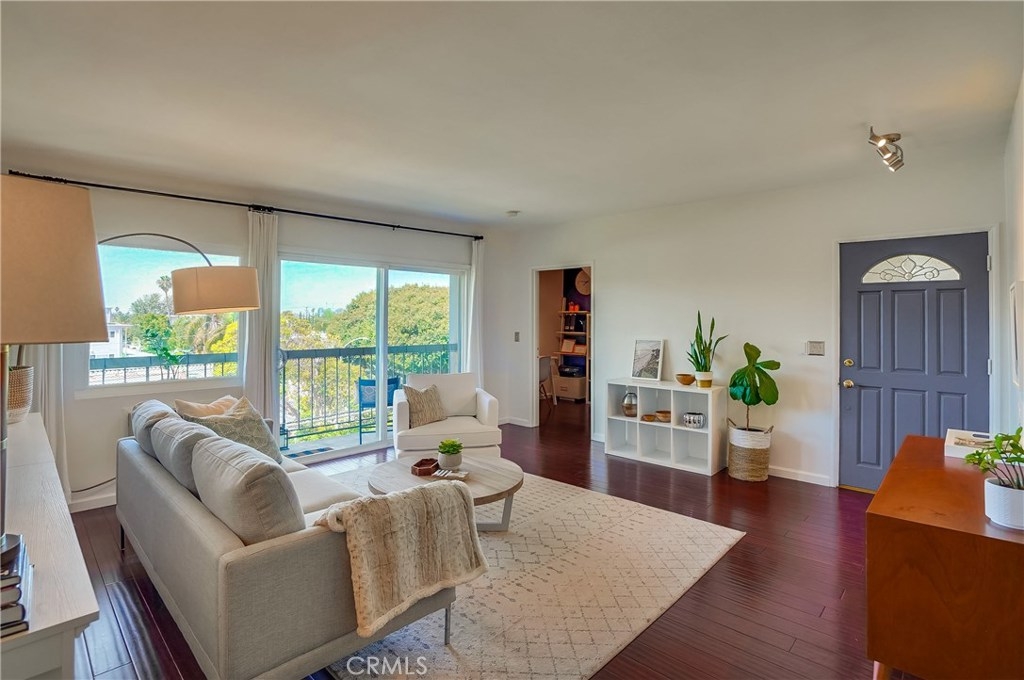 Stylish Modern Condo situated in the historic, lush Bluff Heights neighborhood within Belmont Heights is ready for you. Its prime location turns the dream of So-Cal living into a reality. A luxurious day of shopping, swimming in the ocean, and admiring artwork is all within walking distance. This beautiful home is pure radiance with 2 sizable bedrooms and 1 ¾ baths. With a desirable top corner location, the expansive balcony view of Signal Hill and the San Gabriel mountains is beyond serene. Beaming bamboo flooring conveys chic sustainability, and you’ll wake up basking in the morning sun with the abundance of natural light. The master bedroom boasts an ensuite bathroom and the contemporary guest washroom has been gorgeously remodeled. The spacious kitchen contains bountiful counter space, stainless steel appliances include new stove and dishwasher. The kitchen opens to a cozy dining area and a comfortable sunlit living room, which has easy access to the tranquil balcony through a sliding door. Cool ocean air breezes throughout the home and if preferred the personal air unit will take the edge off summer heat. This highly sought-after floor plan also includes a bonus office, a rare find in today’s market with so much additional value. With only 30 units, the building maintains a well-kept environment. One secured access subterranean parking spot is included. Savings abound with low HOA dues. 3D Tour Link:https://my.matterport.com/show/?m=6LragN5ZqG3&brand=0