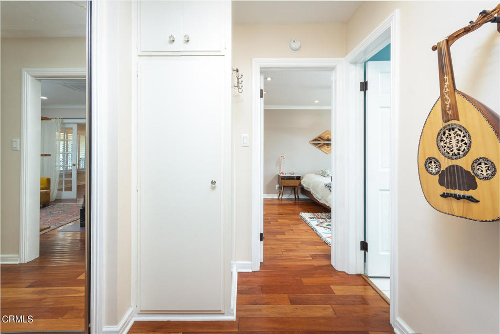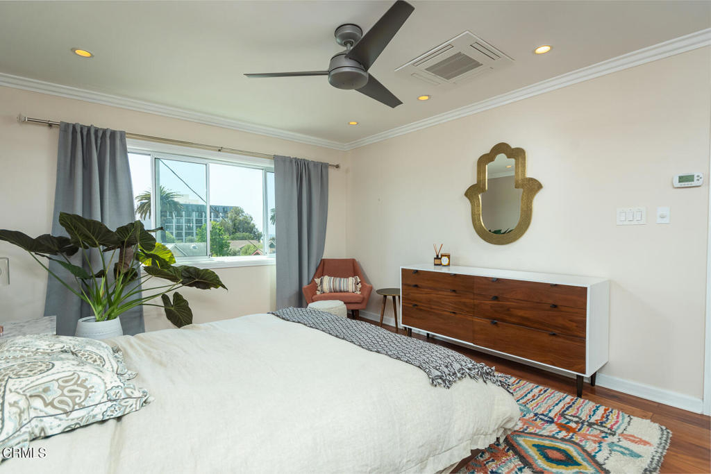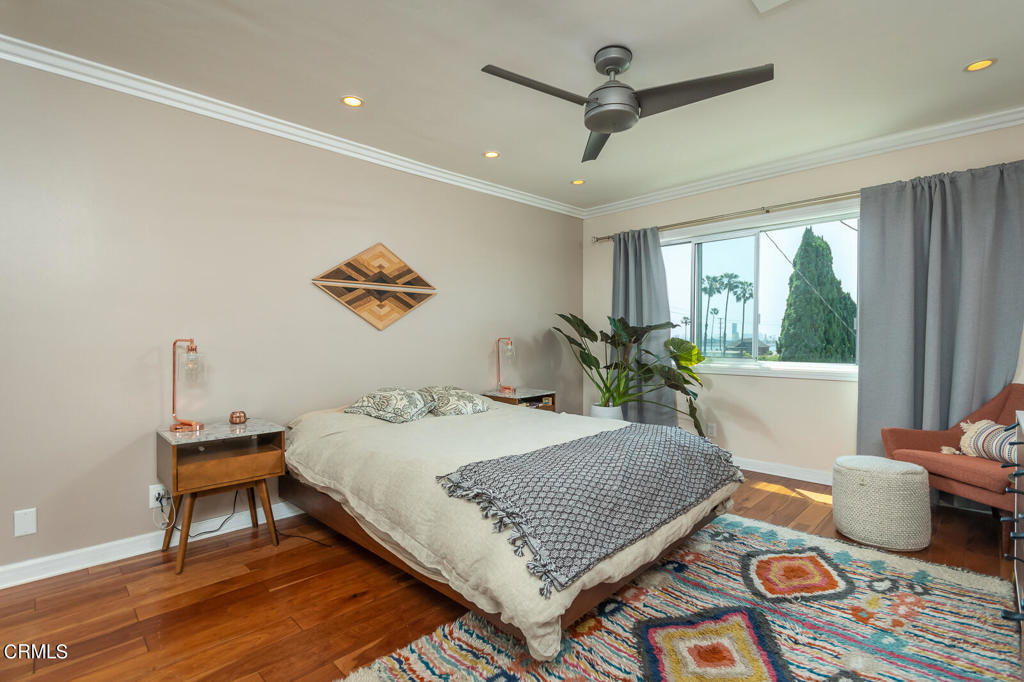 A mid-century modern gem and seaside home, situated on the top-floor of the condominium complex with direct ocean views just steps from the beach. Nestled in the peaceful, historic, and diverse community of Bluff Park in Long Beach, this two bed, two bath home will charm you with its gentle ocean breeze each morning and mid-century tasteful design by renowned architect Paul McKenzie, built in 1966. The two bedrooms/office space, dining room, and bathroom are spacious and with plentiful natural lighting. A remodeled kitchen features granite countertops, tile backsplashes, electric cooktop and double ovens. In-unit storage space is incredibly plentiful, lining the walls of the hallways. Bathroom remodeling includes upgraded quartz counters, tile floors, and shower with deep comfortable soaking tub. The home features plantation shutters, natural hardwood floors, recessed lighting, in-unit modern Bosch washer/dryer, and three new overhead heating and cooling units. Astounding sunset views await on the roomy balcony and on the other side of the home, a serene green space in the atrium. In-garage assigned parking faced by plentiful storage in a locked cabinet. Steps from the condo include unique cafes, farmers markets, restaurants, museums/art galleries, wine tasting, breweries, and bars, as well as several large dog parks in a true dog lover's community. Living in this area is a dream for fans of the outdoors, with miles of ocean front running and bike path ways, outdoor yoga, kayaking, world-class surfing, boating, and so much more. Easy access to the vibrant downtown district and Long Beach California State University as well as the 22, 405, and 710 freeways.