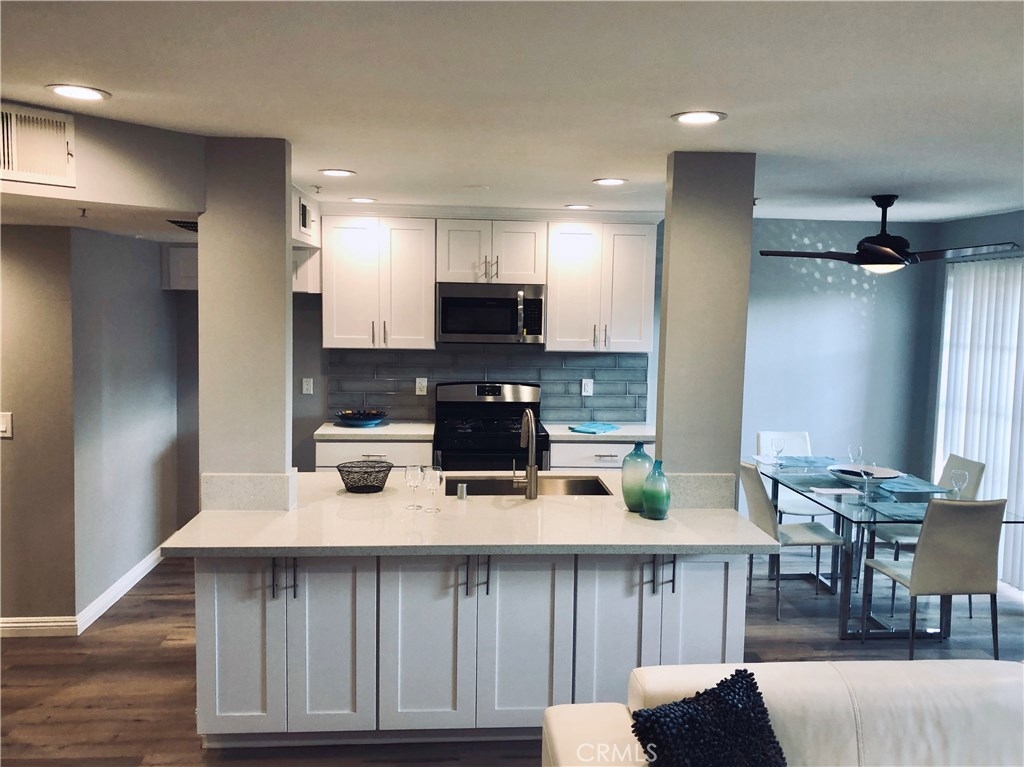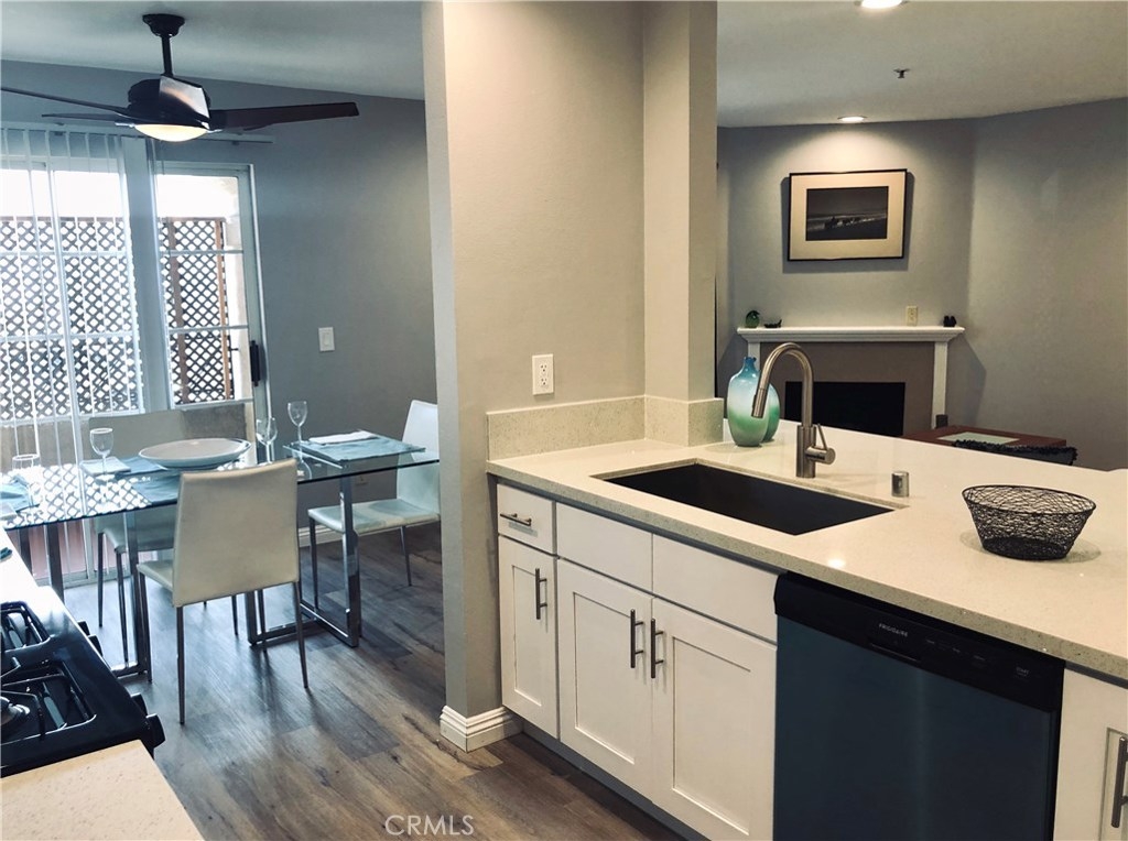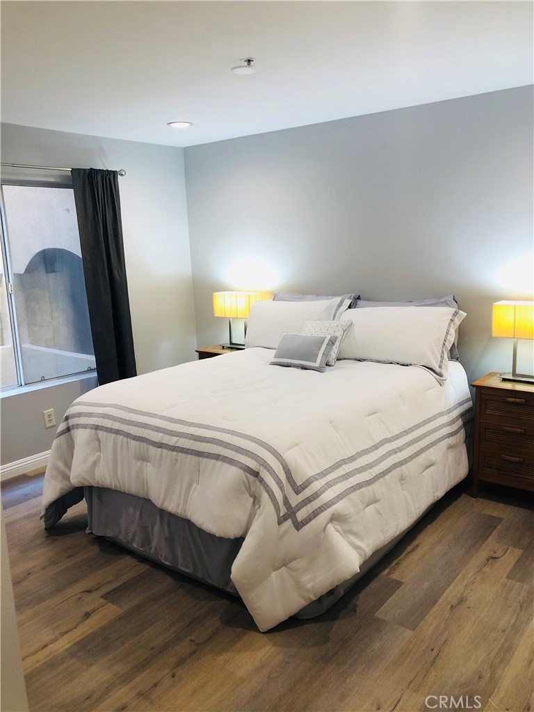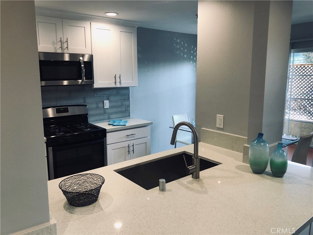 Spacious end unit Condo located in the desirable, gated View of the Pacific. This 2 bed 2 bath unit features an open floor plan and has been beautifully remodeled. The kitchen has been opened up for greater space for entertaining and has new cabinets and quartz countertops, newer appliance, sink and recessed lighting. The living room is spacious with a fireplace and balcony access. Additional features include newer laminate floors throughout, recessed lighting, and new vanities in the baths. Keep cool inside with the central air conditioning or relax at the nicely appointed large community area. Pool with lounge chairs, BBQ and covered sitting area. Perfectly located in the center of Long Beach and just Minutes to the beach, downtown Long Beach, Belmont Shores, Long Beach State and City Colleges, restaurants, shopping and more. HOA Covers: Internet (500/500 Speed), Trash, Sewer, Cable TV, Water, Insurance, and maintenance of grounds.