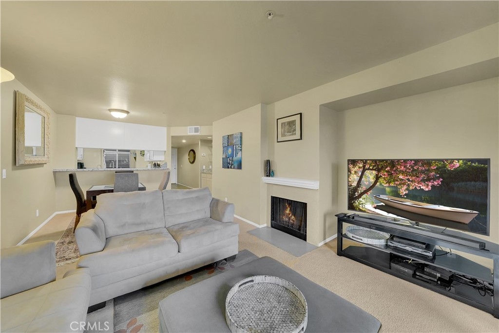 Lifestyle and location!! This beautiful, bright condo is just the one you have been waiting for. This spacious two bedroom is an upper floor unit and has a light and bright open floor plan. The kitchen is open to the dining area and living room which is nicely accented by large sliders leading to your own private balcony. Enjoy an evening at home snuggling near the fireplace or sitting on the balcony with tree top views of the neighborhood. The kitchen features pride in ownership upgrades, new counter tops and fresh paint. The bathrooms are large with double sinks and the closets are more than ample with the primary suite having two closets.. Laundry is a breeze with your washer and dryer in its own dedicated closet. Central heating and air and tandem parking spaces secure subterranean garage, this one really does have it all! Don't delay...schedule an appointment today!