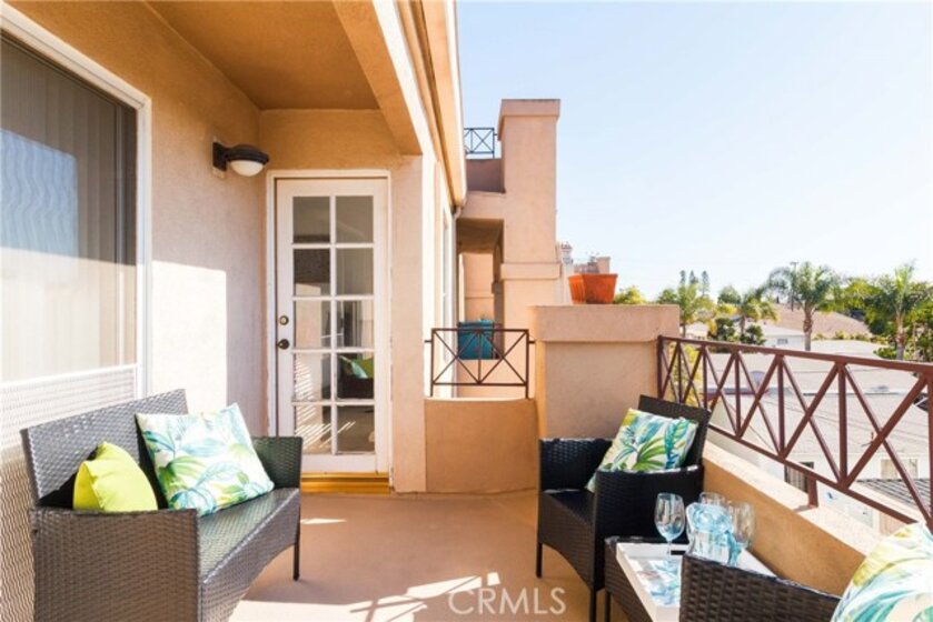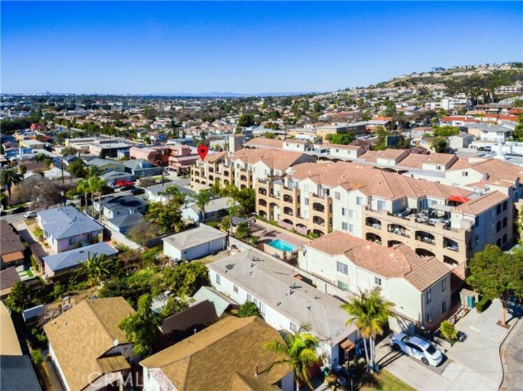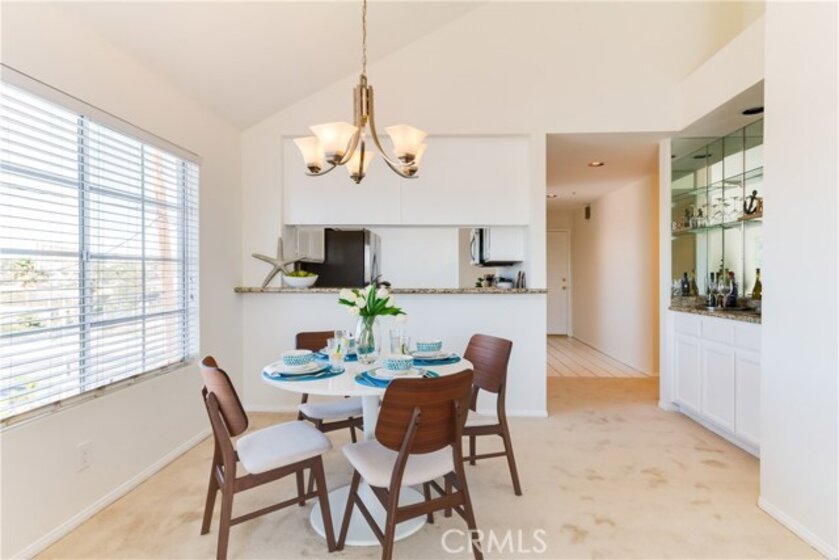 A coveted top floor corner unit with views of downtown Long Beach, this 3rd-floor apartment lives large with high vaulted ceilings and an open living-dining room complete with a fireplace and plenty of windows to usher in the light. Brand new paint and new flooring throughout brighten up the sunny space even more. Grab a glass from the wet bar off the dining area and step outside to a breezy southwest-facing wrap around balcony for a cocktail, or dine casually in the eat-in kitchen. There are two large bedrooms and bathrooms, and the primary bedroom features a private door to the balcony and a bathroom with his-and-hers sinks. In-unit laundry, central AC/heat and two side-by-side secure private garage parking spots are included, as well as access to the building’s communal pool. Right off the PCH with easy access everywhere, minutes from the beach and a short distance from two parks, restaurants, bars, and other conveniences. The HOA includes cable, water, insurance, communal pool & bbq area plus maintenance of the grounds. Don't miss the chance to see this one!
