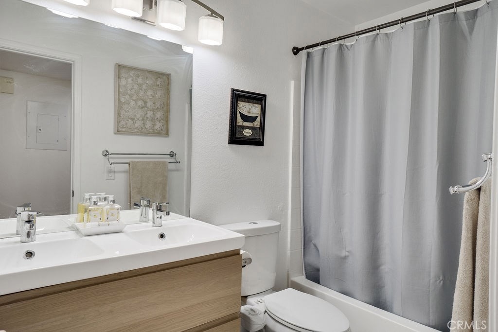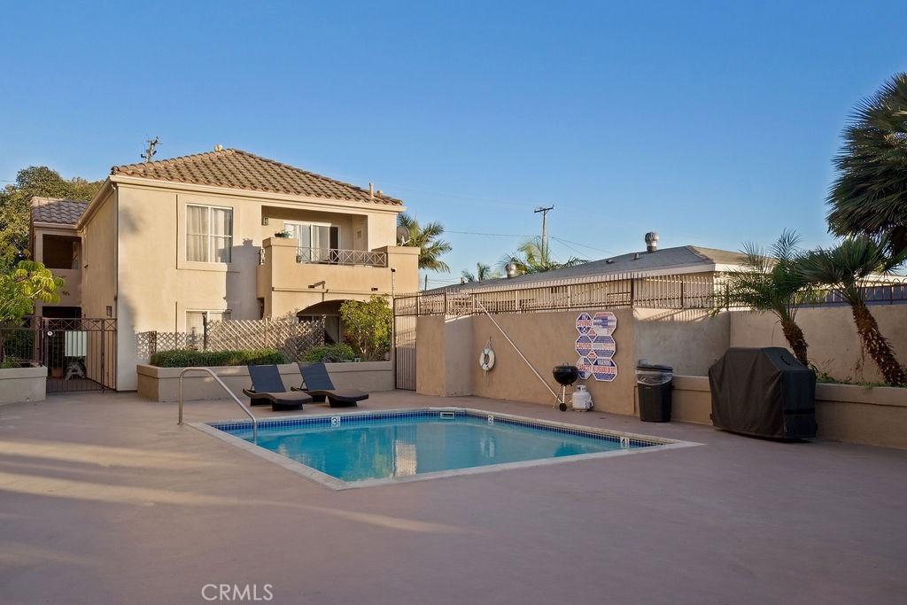 Crown jewel at Views of the Pacific! This spacious end-unit penthouse is ideally situated on the southeast end of the top floor, set back from the main road. Upgrades abound including the modernized kitchen with LED recessed lighting, stainless steel appliances, glass tile backsplash, sparkling quartz countertops & fresh white cabinetry. Connected to the kitchen by the dining room & breakfast bar is the open living room. Here you will enjoy abundant natural lighting, balcony access, hardwood flooring, fireplace, plus efficient office alcove & chic wet bar. Architecturally fascinating details include soaring ceilings up to an incredible loft bonus room that would make an ideal den, home office or gym. There is even a peek-a-boo ocean view! Not included in the square footage is an additional room perfect for homework or crafts, plus a closet for bulky storage. Additional amenities include a laundry closet & central A/C. The updated full hall bathroom services both the living space & secondary bedroom. Both bedrooms offer plantation shutters. The primary suite features a dedicated remodeled full bathroom & walk-in closet. Assigned secure parking for 2 cars in this gated community also boasting an inviting pool, patio with lounge chairs, BBQs & pergola seating area complete with palm trees. Comprehensive HOA dues include water, cable & internet. Located in the heart of Long Beach easily accessible to the beach, downtown, Belmont Shore, colleges, shops & restaurants. Welcome home!