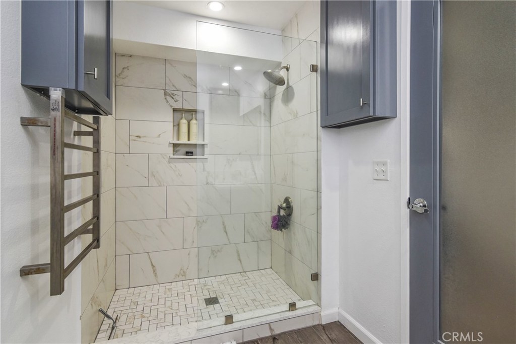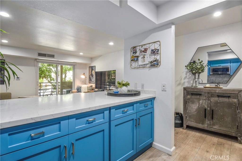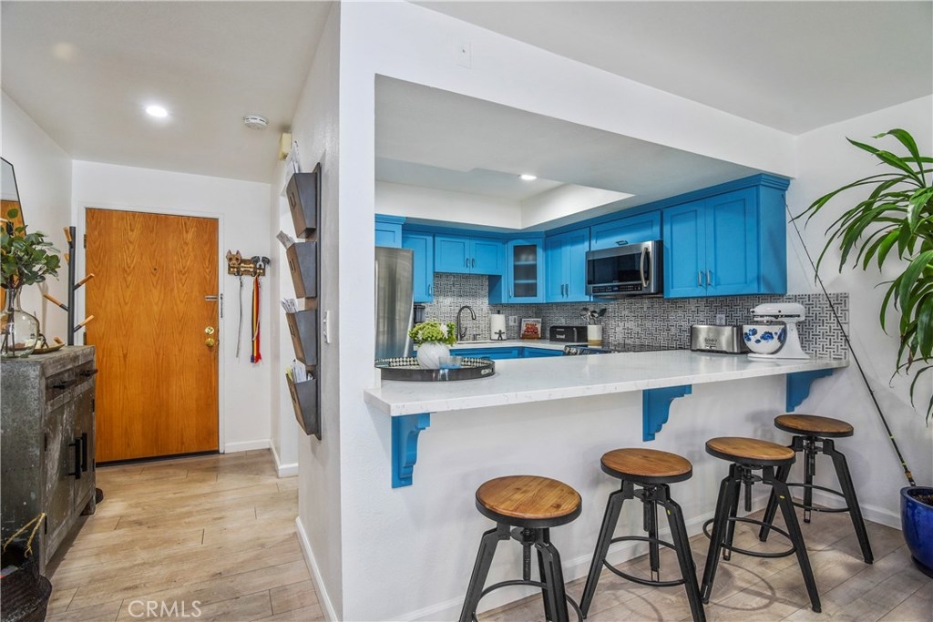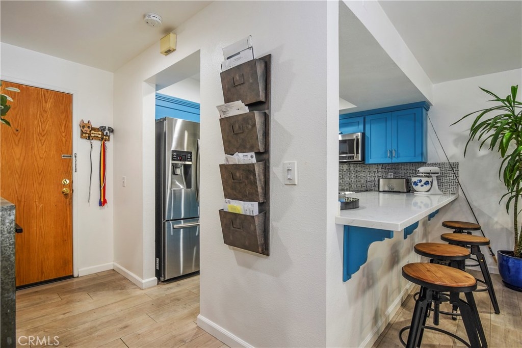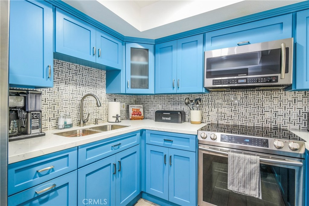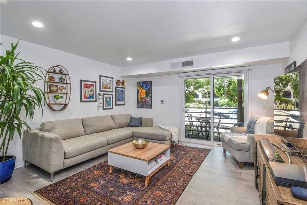 Spacious highly upgraded full of light one bedroom unit that is move-in ready. The kitchen comes with high-end fully upgraded Samsung Stainless Steel appliances that include a built-in microwave, glass top electric stove, and french door refrigerator. New custom quartz countertop, designer tile back splash, custom slide out drawer cabinets, and recessed lighting. Quality wood laminate flooring, custom doors, highly upgraded new double paned windows and sliding glass doors with custom shades, and recessed lighting throughout. Direct access to a private balcony. Full sized high-end Samsung washer and dryer conveniently located with in unit. New Air Conditioner and Hot Water Heater. Custom build California Custom Closet and unbelievable amount custom storage cabinets in bedroom. Fully upgraded bathroom with all new fixtures, custom cabinets with quartz counter top and custom tile walk-in shower. This unit comes with one parking space and private storage cage. Additional parking available for lease from the HOA at a minimal cost. This Villa Pacifica controlled access gated community includes a pool, spa, BBQ area with tables, and private community dog park. Location is 5 min walking to several grocery stores, restaurants, health club, coffee shops, and endless other retail businesses. This building is VA approved.
