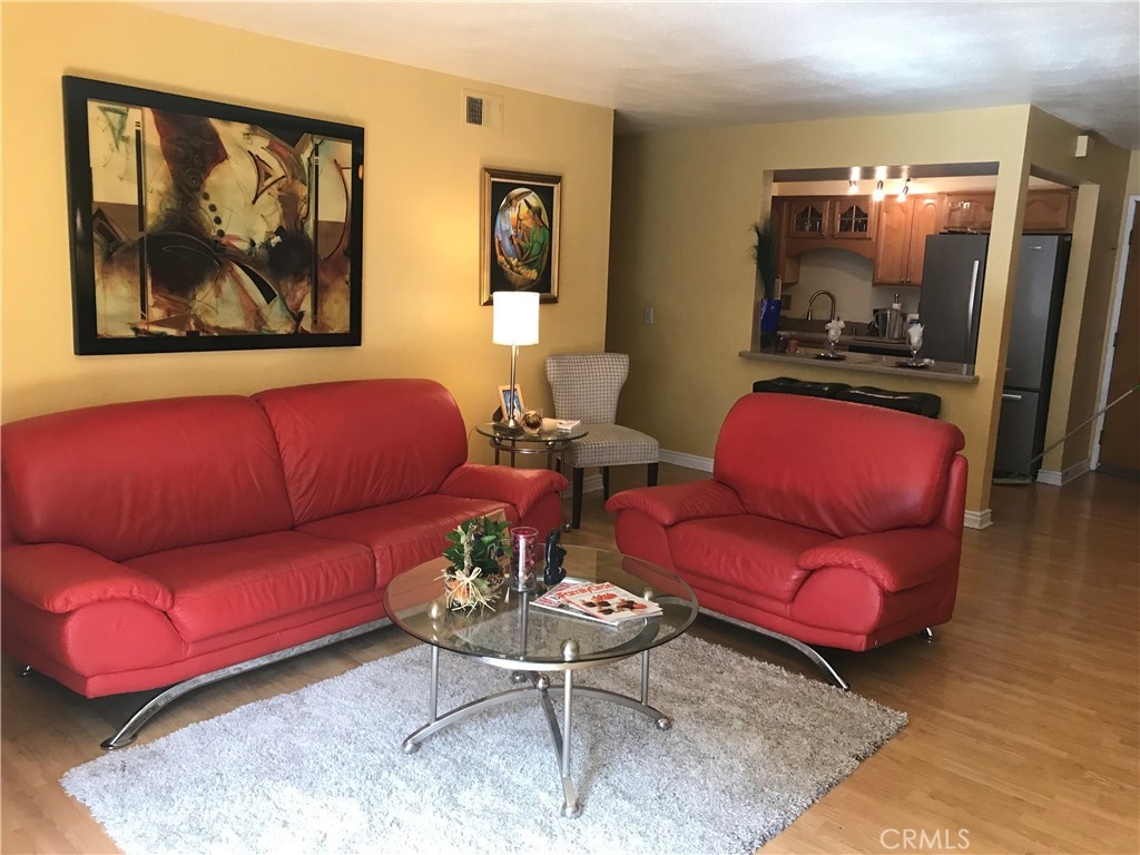 Beautiful end-unit condo in East Long Beach ready to move in! Just off the traffic circle, Villa Pacifica is a secured, well-kept, centrally located condominium complex close enough to the beach to feel the breezes from the ocean! With almost 1200 square feet of spacious living, this home boasts 2 bedrooms, 2 full baths, an upgraded kitchen with stainless appliances, inside laundry, laminate flooring and colorful paint throughout. There is a relaxing balcony facing the huge community pool and spa. The unit has central heating and air conditioning as well as 2 secured parking spaces and extra storage. Don't wait! This is the least expensive condo in the area, and is VA approved!