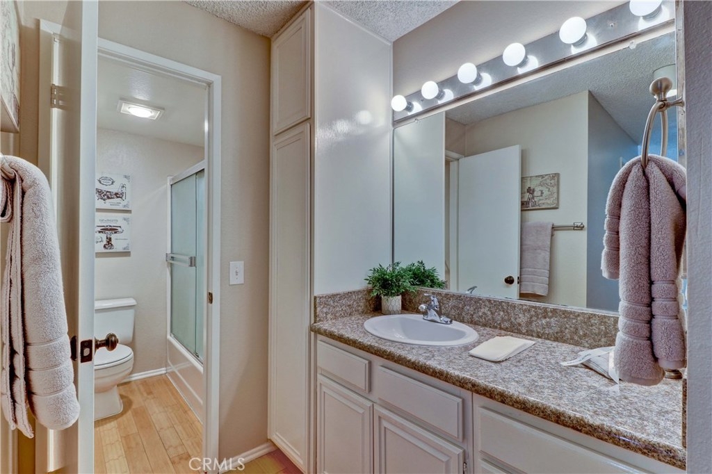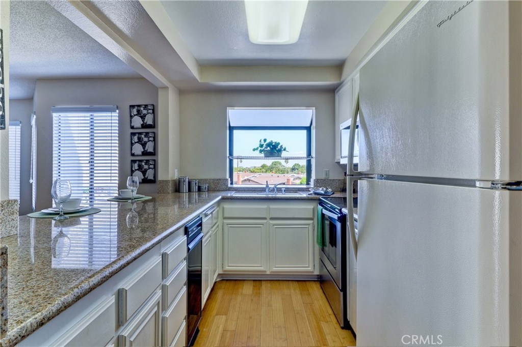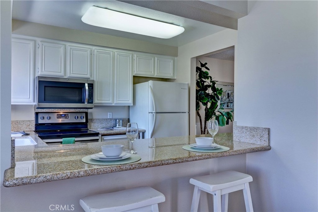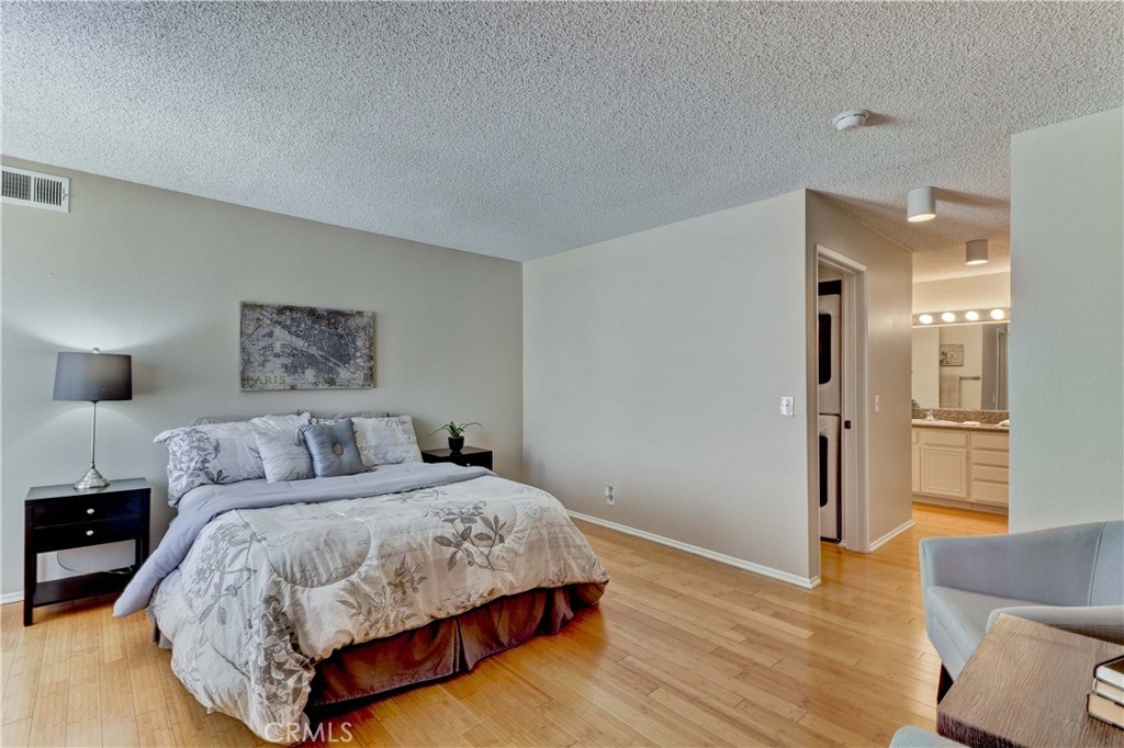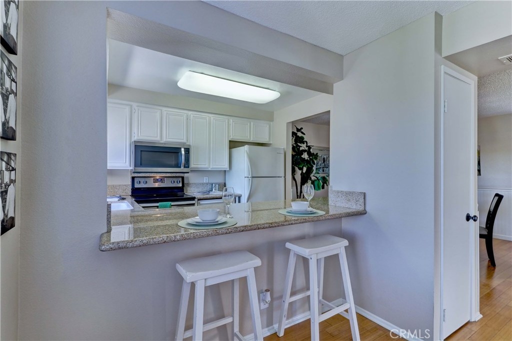 NICELY UPGRADED ONE BEDROOM WITH LARGE DEN! You'll love this beautiful one bedroom condominium with a massive den that could covert to a private bedroom! BAMBOO FLOORS accentuate the open floor plan and flow throughout all areas of the home. The kitchen and den both enjoy PANORAMIC MOUNTAIN AND CITY LIGHT VIEWS! The light and bright kitchen features a garden window, stainless range, stainless microwave, smooth ceilings, upgraded lighting, pantry and granite counters crowned atop white cabinets! The living room is open to the dining area which highlights wainscoting, upgraded moldings and designer lighting! The large master bedroom, with a custom built closet, could easily accommodate both a king size bed and small home office! You'll adore the ensuite with granite counters, a linen closet and white cabinets. There is also a half bath for guests! The huge den includes a ceiling fan, private closet and bay windows! Additional highlights of this corner unit include CENTRAL AIR and INSIDE LAUNDRY with front load washer & dryer included! One covered parking space and a storage locker are also included! VILLA PACIFICA includes a pool, spa, barbecue, evening security patrol and pet potty area! Two dogs/cats under 25lbs. are welcome! Located near the newly revitalized circle area restaurants, retailers, gyms and a new drive-thru Starbucks! This versatile floorpan offering great views and a fantastic location will not last long! Hurry! VA APPROVED!