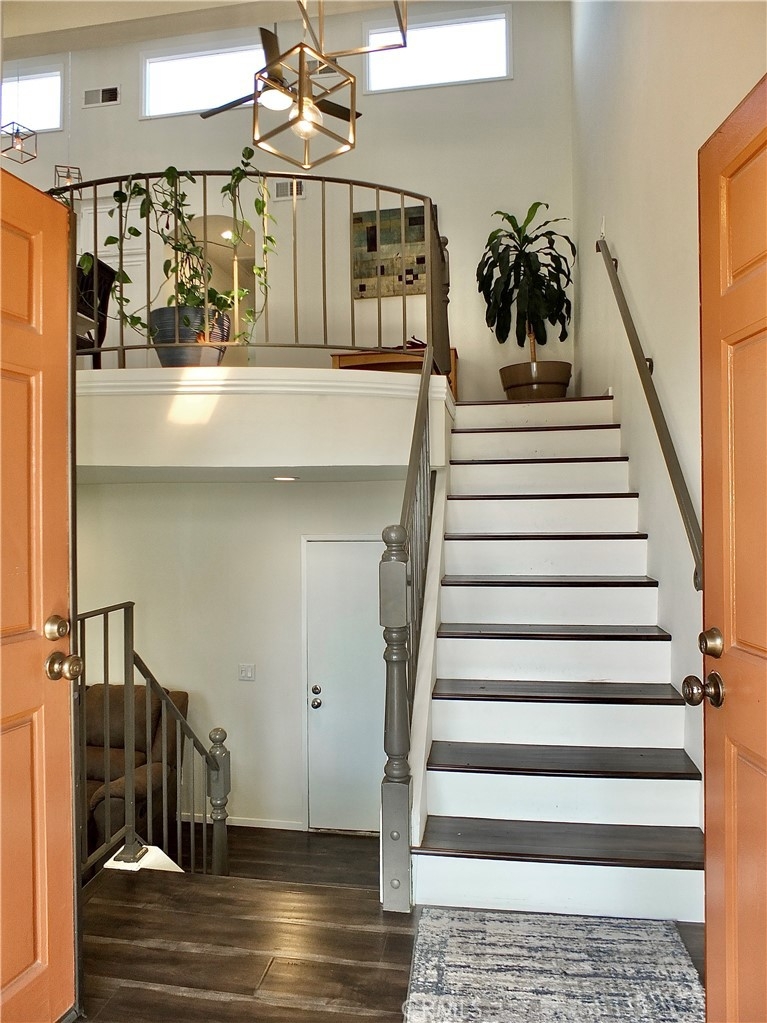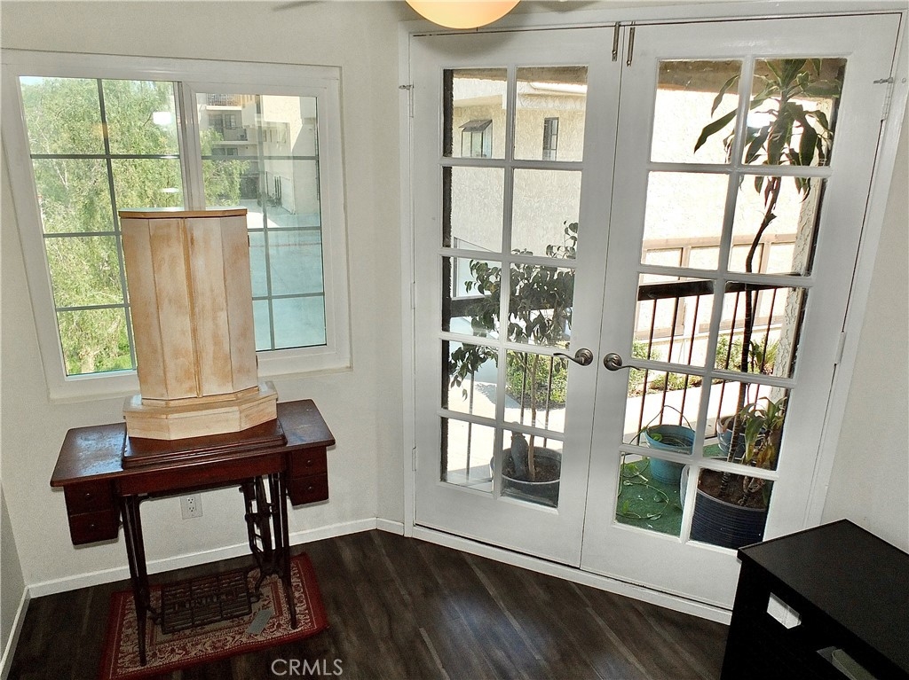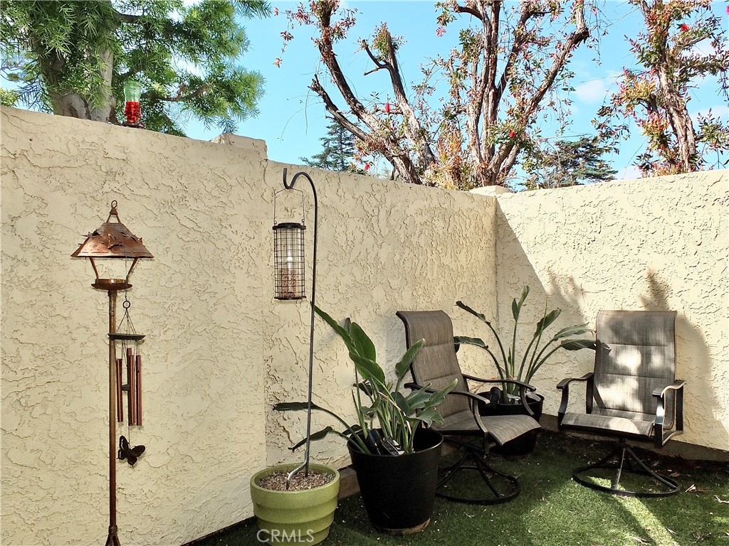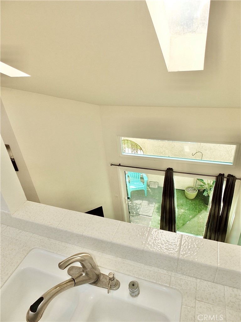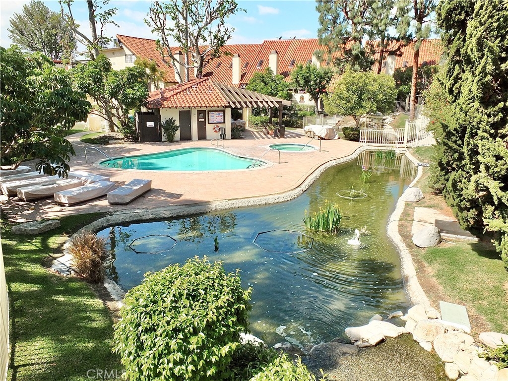 Welcome to Village Grove! This great community in the Lakewood Village area features waterfalls, streams, a pool, and spa. Bright and open split-level townhome in a contemporary gated community. From the double door entry, step down into the beautiful living room which features cathedral ceilings with skylights, a romantic wood burning fireplace, and sliding doors that open to the private front patio. A convenient powder room and garage access round out this level. The upper level consists of an open-plan dining room and kitchen that overlooks the living room. Numerous skylights and windows create a light and bright atmosphere. Very charming Juliet style-balcony overlooking the living room area. The master bedroom is complete with a large walk-in closet and private half bath. The second bedroom and bathroom can also be found on the second floor. French doors from both bedrooms open to a small shared balcony. Beautiful community pool and spa, recreation room, lush landscaping and waterfalls, and ample guest parking. The laundry area is in the oversized 2 car attached garage. Laminate flooring throughout. Newer Central Air and Heat systems. Short proximity to Bancroft Middle School and Pan American Park.