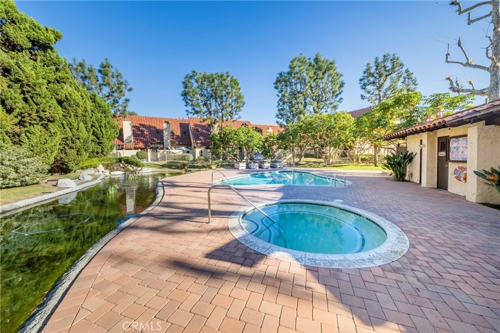 That a look at this beautiful home in a wonderful gated community in a very desirable location! The master bedroom has one full bathroom. The kitchen has charming cabinets and is fully equipped with a dishwasher, refrigerator, and recessed lighting. The living room is a great place to host with a great dining area along with a fireplace with a wonderful view to a backyard with a pond and waterfall. There is a 2 car parking garage and the HOA fee covers the water and trash bill! This location has great restaurants for dates, shopping, school, parks all near by Take a look at this ideal home today!