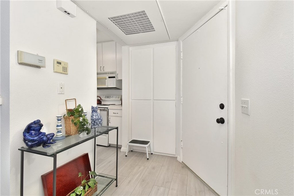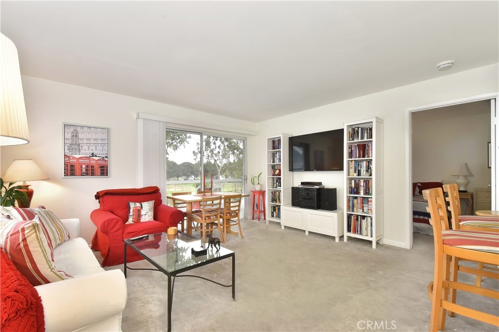 Golf course living at its best – this is the perfect opportunity to get a home in a premium location in the gated resort like community of Village On The Green. It is a beautiful & bright top level unit with great views of the golf course. The sliding glass doors in the living room allows for a full panoramic view of the golf course which you also see from the bedroom window. A huge added benefit is the A/C unit which is not standard in this complex. It is move-in ready with scraped ceilings, freshly painted throughout, new light fixtures, hardware & faucets. Also new baseboards, wood laminate floors in the bathroom, kitchen & entry & new faux wood blinds. The bedroom is spacious with plenty of room for a desk & it also has a walk-in closet. The extra large balcony looks out over the golf course & faces southeast for maximum enjoyment, avoiding the hot afternoon sun but with a nice ocean breeze. There is also a large enclosed storage area on the balcony. This gated community boasts a club house with a pool table, gym, a beautiful pool & spa area with BBQs and a fire pit. It borders the golf course and is close to sunny beaches, the Marine Stadium, exciting Belmont Shore, shopping & entertainment. It is also conveniently located with easy access to CSULB, public transportation & freeways. The HOA dues includes all your water as well as heating your water. Your only utility will be your electric bill and internet. You'll have one carport plus one additional assigned space.
