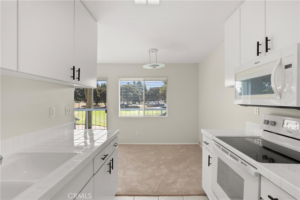 Enjoy the amazing views of Bixby Village Golf Course from your living room, dining room, kitchen and deck. Step inside this beautifully refurbished upstairs one bedroom in the gated community of Village on the Green. Feast your eyes on the action of the putting greens, fairways, and the serenity of the swaying trees. Enjoy the brand-new carpet and new fresh paint. The gleaming white kitchen opens to the dining area. The kitchen offers a microwave, a new dishwasher and the refrigerator is included. Tile floors are in the kitchen, bathroom and entry. The large bedroom offers a spacious walk-in closet with shelves. The bathroom has a tub shower combo with the addition of updated lighting and fixtures. The large balcony has plenty of space for dining and entertaining and a place to relax and enjoy the view. You will find a full-size storage closet on the deck. There is a carport AND a parking space and guest parking inside the gates of the community. This unit is in a quiet location just a few steps from the community pool. Don’t miss this piece of paradise.