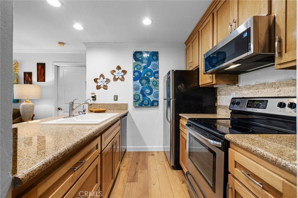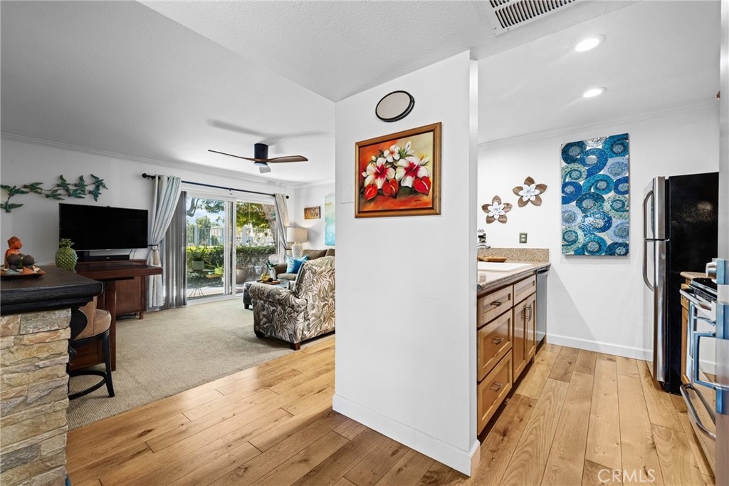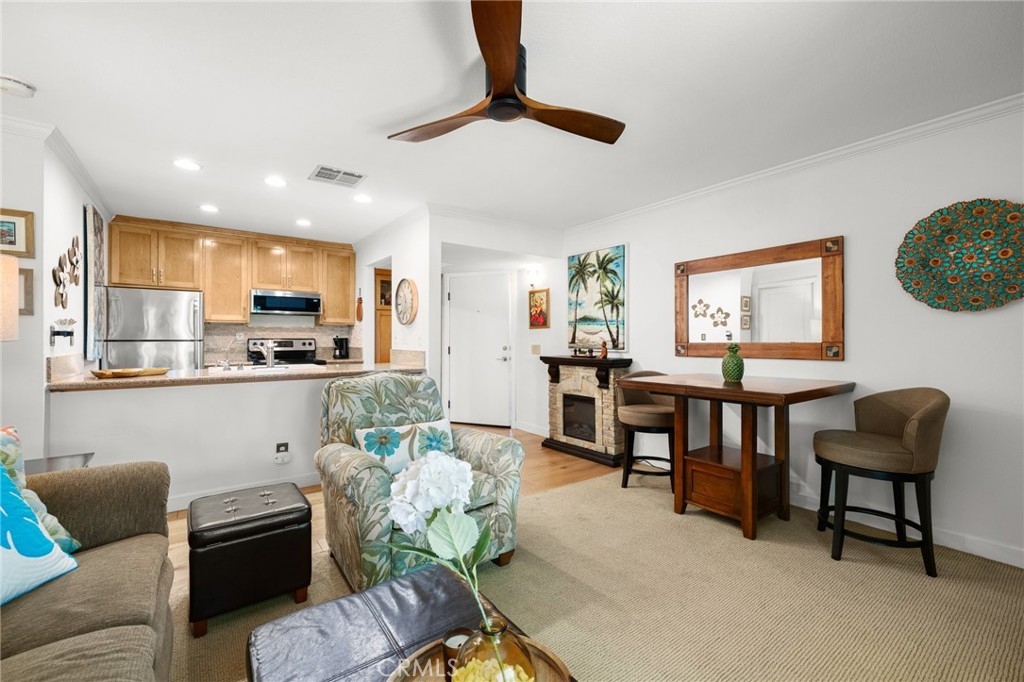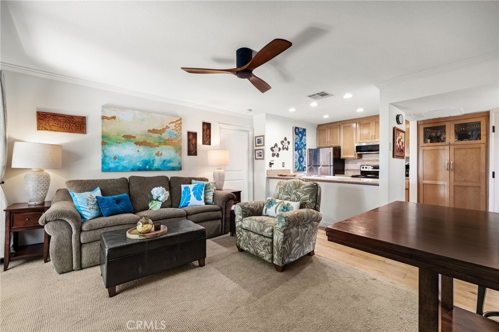 Discover the perfect blend of comfort and style in this spacious bottom-floor condo located in the prestigious gated community of Village on the Green. This inviting 1-bedroom, 1-bathroom unit offers a serene retreat with its private patio that boasts stunning views of the lush golf course. The well-appointed kitchen features granite countertops, a convenient breakfast bar, and ample cabinetry, making meal prep a pleasure. The bedroom is generously sized with a large closet, providing plenty of storage space. Enjoy outside on your private patio, where you can unwind while taking in the picturesque golf course views. The patio also includes a large storage room for added convenience. As part of the Village on the Green community, you'll have access to an array of resort-style amenities, including a sparkling pool, relaxing spa, outdoor dining area, billiard room, multipurpose room with a kitchen, and a well-equipped gym room. This condo comes with one designated parking space, ensuring easy access to your home. Primely located close to CSULB, multiple shopping centers and freeway accesses. Whether you're a golf enthusiast or simply seeking a tranquil living environment, this condo offers everything you need for a comfortable and luxurious lifestyle.