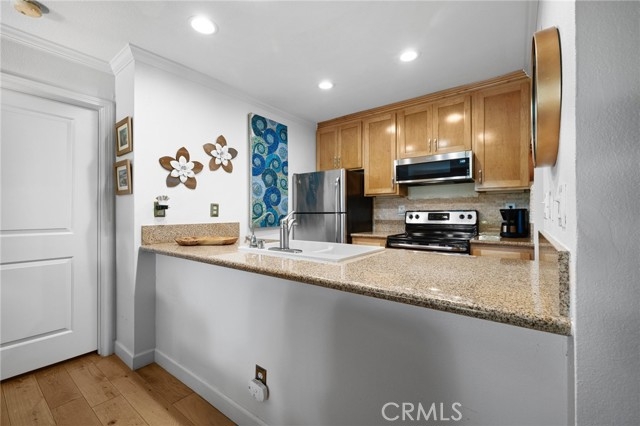 Discover the perfect blend of comfort and style in this spacious bottom-floor condo located in the prestigious gated community of Village on the Green. This inviting 1-bedroom, 1-bathroom unit offers a serene retreat with its private patio that boasts stunning views of the lush golf course. The well-appointed kitchen features granite countertops, a convenient breakfast bar, and ample cabinetry, making meal prep a pleasure. The bedroom is generously sized with a large closet, providing plenty of storage space. Enjoy outside on your private patio, where you can unwind while taking in the picturesque golf course views. The patio also includes a large storage room for added convenience. As part of the Village on the Green community, you'll have access to an array of resort-style amenities, including a sparkling pool, relaxing spa, outdoor dining area, billiard room, multipurpose room with a kitchen, and a well-equipped gym room. This condo comes with one designated parking space, ensuring easy access to your home. Primely located close to CSULB, multiple shopping centers and freeway accesses. Whether you're a golf enthusiast or simply seeking a tranquil living environment, this condo offers everything you need for a comfortable and luxurious lifestyle.