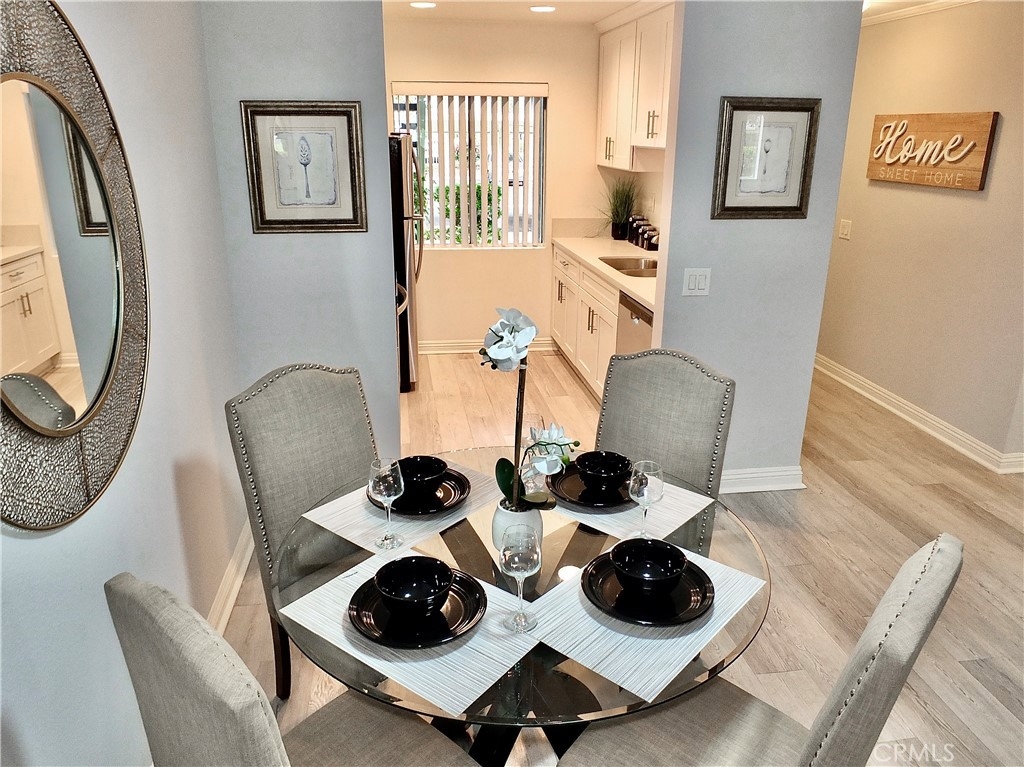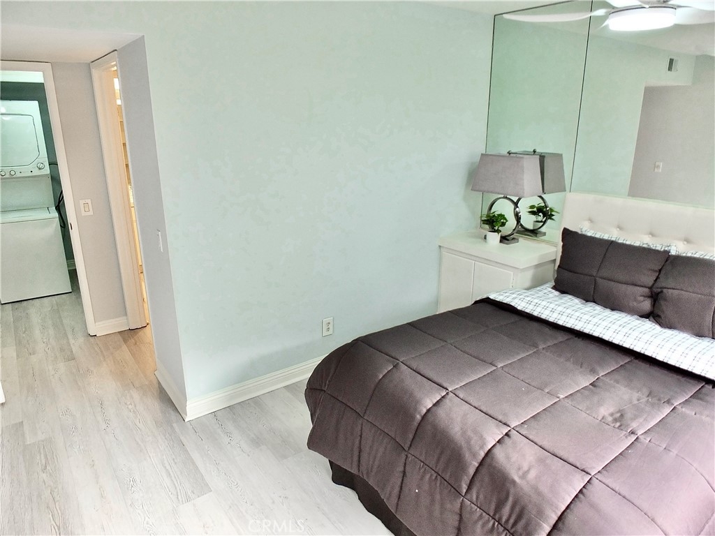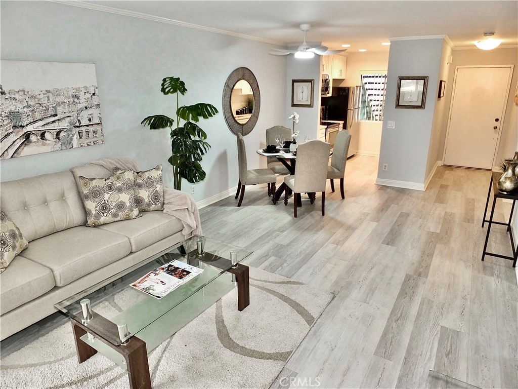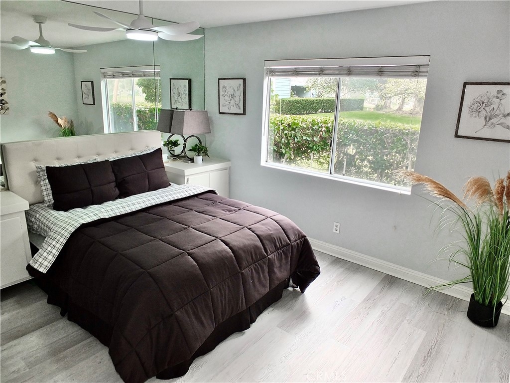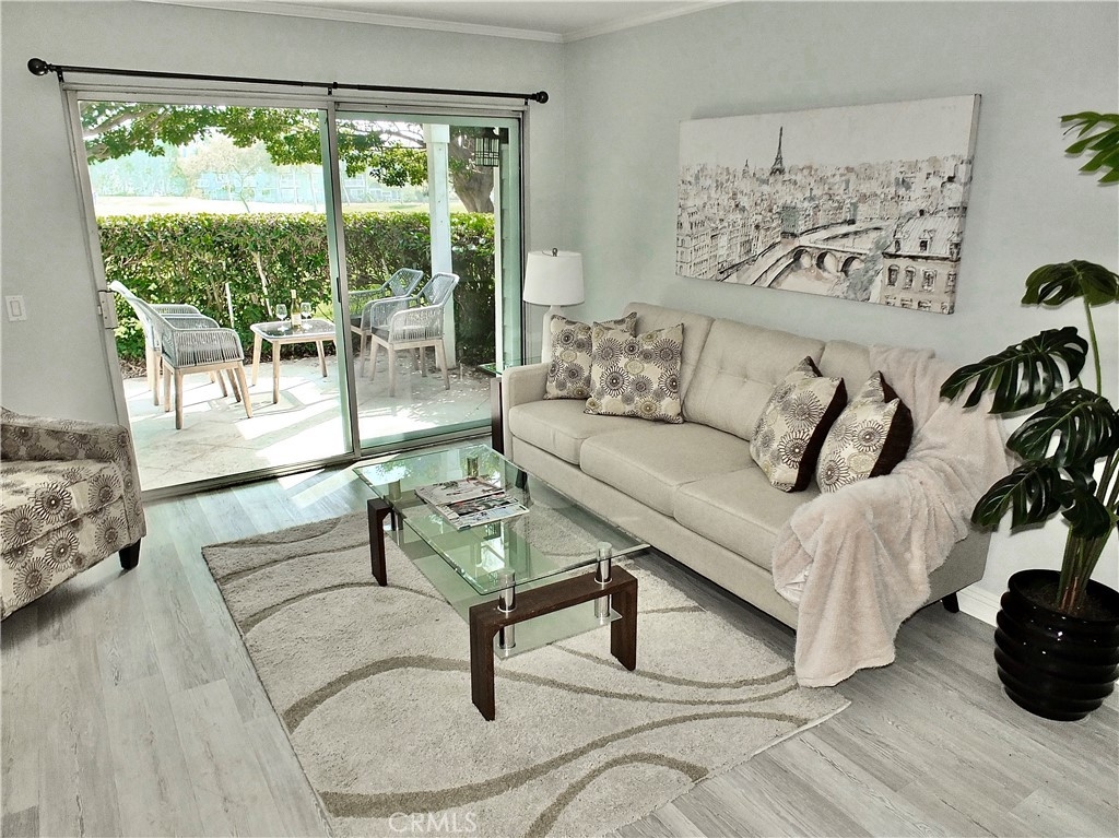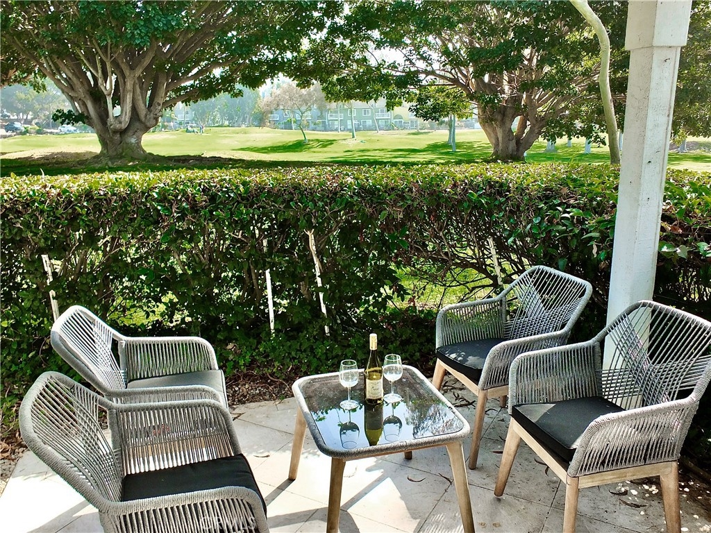 This beautifully renovated, ground-level 2-bed 2-bath home, nestled within the Bixby Village Golf Course, is a rare gem beckoning to you. Perfectly move-in-ready, it combines resort-style living with a touch of everyday luxury. From the inviting front porch, you'll step inside and find exquisite laminate wood floors accentuating the serene ambiance. The home is fully equipped with all essential appliances. The well-appointed kitchen, with its quartz countertops and ample cabinetry, makes meal prep a pleasure and flows naturally to a cozy dining area. From the open-concept living room, you can breathe in the grand view of lush green contours beyond the spacious and hedge-lined patio, which includes a large storage room with possible shelving for added convenience. A master suite with an expansive walk-in closet and a similarly generously sized second bedroom assure riviera-style privacy and relaxation. This home also features an in-unit stacked washer-dryer, with a community laundry facility nearby. Parking is convenient with a covered carport, designated stall, and additional guest spaces. Residents of Village on the Green community enjoy exclusive resort-style amenities, such as a pool, spa, and barbecue and picnic areas outdoors, plus a clubhouse with a billiard room, multi-purpose room equipped with kitchen and wet bar, and fitness center. Situated in the Marina Pacifica neighborhood, shopping, fine dining, beaches, entertainment, Cal State Long Beach, VA Medical Center, and access to Freeways 22, 405, and 605 are all in close proximity. Wide, protected walking and bike paths and a city bus stop are just outside the community gate, adding to the convenience. Whether you're a golf enthusiast or a tranquility seeker, this home sweet home truly has it all and offers you a luxurious and peaceful lifestyle.