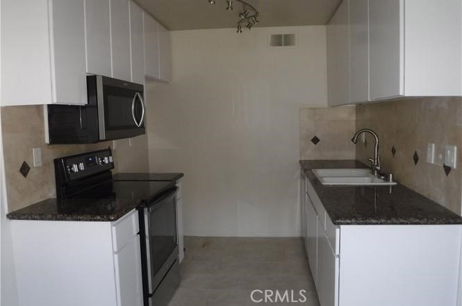 Located in the Village on the Green Complex. Large one bedroom and one full bath upstairs unit has a newly updated kitchen with new stainless steel appliances. Large bedroom with walk in closet, shutters and updated bath. The Living room dining area and large balcony overlook the golf course. The community features a beautiful pool area with spa and built in barbeque area, club house and exercise room. This unit comes with two assigned parking spots one covered. There is a community laundry room close to unit. Close to shopping, entertainment and the beach. The complex is gated.