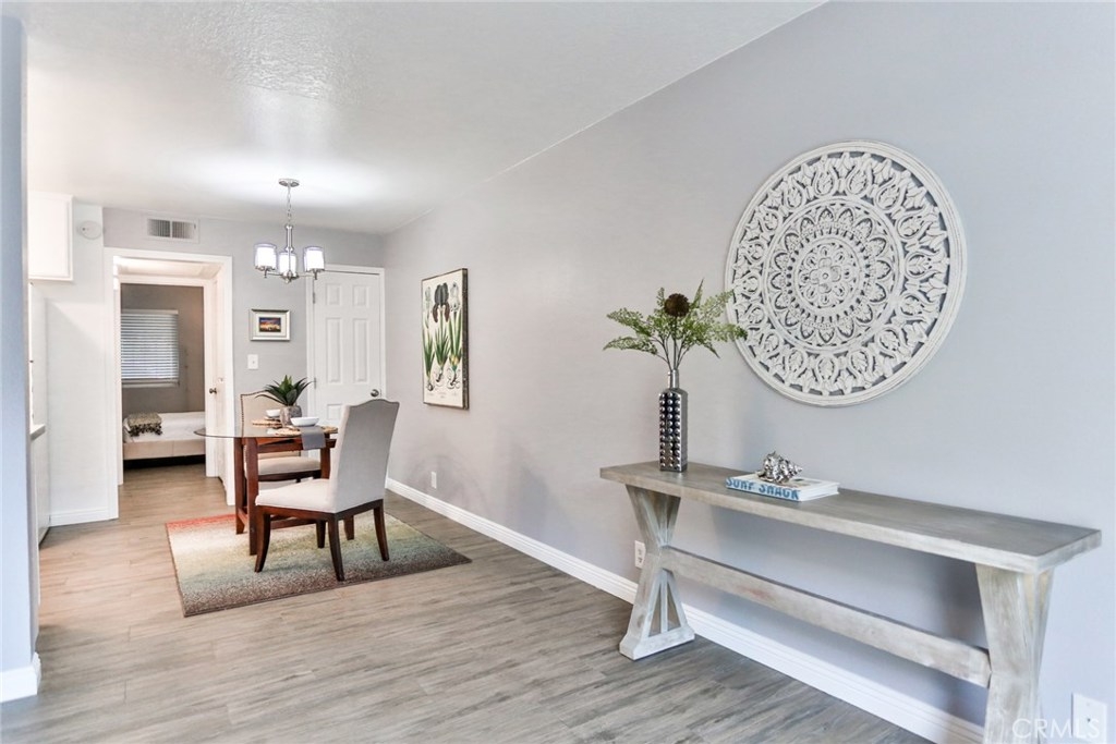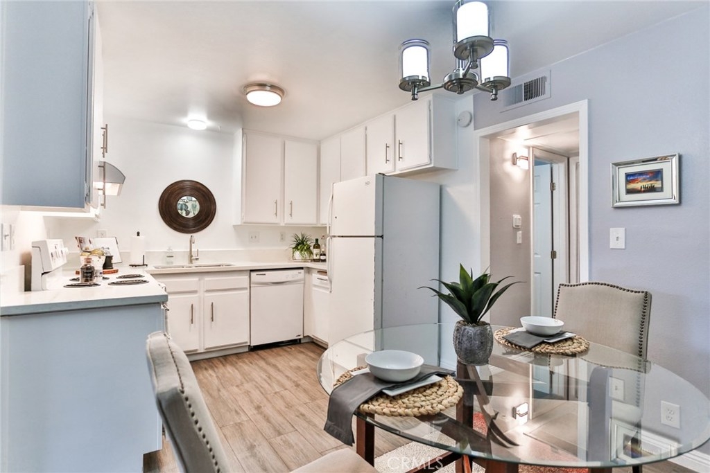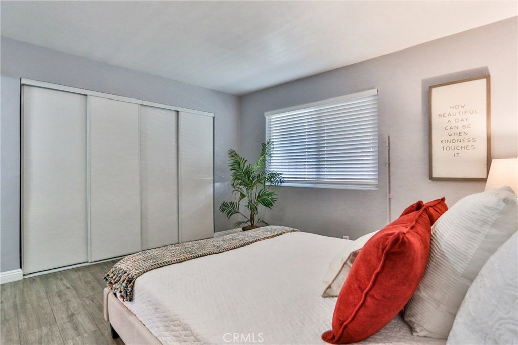 Welcome home to this modern and just renovated 1 bedroom, 1 full bathroom condo with 1 subterranean secured parking space. Interior laundry in the closet for stackable washer and dryer. Great location! Just blocks from the Downtown Entertainment District, East Village Art District, and close to restaurants, shops, Shoreline Village, The Aquarium of the Pacific, the Pike, and public transportation. All new renovation includes; ceramic tile flooring made to look and feel like wood without the upkeep, designer color paint throughout, blinds, textured ceilings, new fixtures, and quartz countertops. Very clean and modern style. The bedroom is spacious and has a full wall length closet. This unit is approximately 594 sqft of living space on the ground floor in a gated community in a quiet neighborhood.