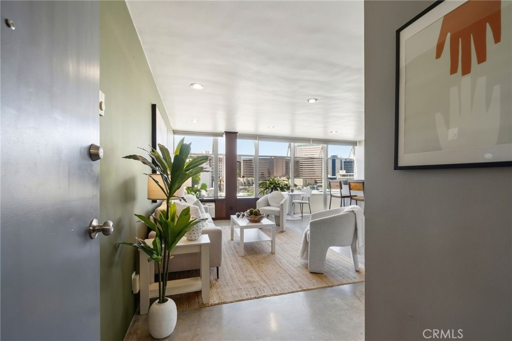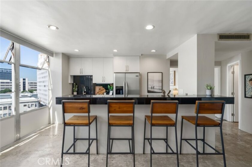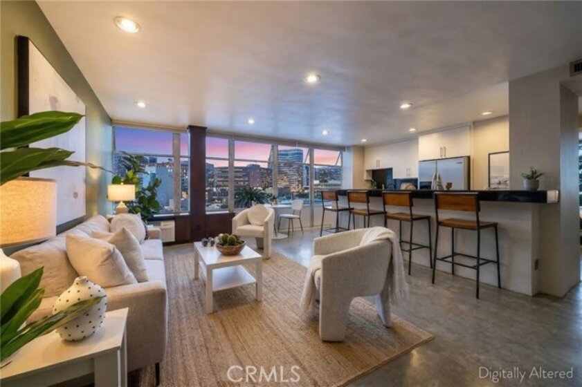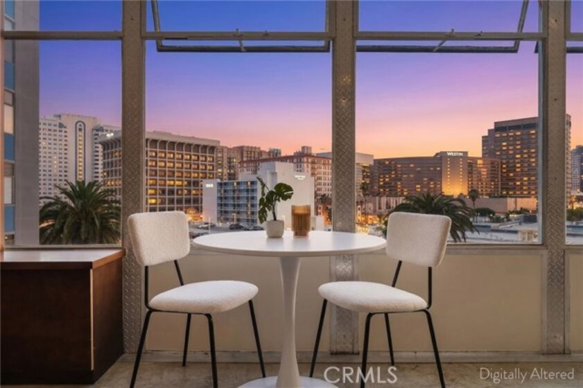 If you are looking for a hip, artsy loft vibe with epic views just a couple blocks from the beach this is IT! The unit is located on the 6th floor with sprawling city views from the kitchen and palm tree tops right outside the bedroom windows. The Royal Palms has an impressive secure entrance right off Atlantic with facial recognition and double fob entrance, courtyard and modern lobby. Jump in the elevator and find yourself entering a southwest facing corner unit with wall to wall glass overlooking the city. Fisher & Paykel appliances, polished concrete floors and a beautifully remodeled bathroom. Belly up to the bar stools and watch the sunset and enjoy this open loft concept. Parking is available directly across the street and paid for by the seller for the whole first year of ownership. Cool off in the pool and catch some rays in one of the outdoor seating areas. This building is very pet friendly and so are the residents!