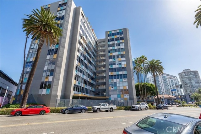 Welcome to this stylish mid-century modern condo in the heart of Downtown Long Beach! Located in the iconic Royal Palms building, this 2-bedroom, 1-bath residence offers 820 sq. ft. of thoughtfully designed living space with sweeping city views and a peek-boo view of the Queen Mary through oversized windows that flood the home with natural light. This is a end unit with only one shared wall. Seller also has an ASSUMABLE FHA loan with a 2.75% rate with approximate balance of $360K. Seller is willing to consider loan assumption. Step inside to find an open-concept floor plan featuring a modern kitchen with sleek cabinetry, granite countertops, glass backsplash, stainless steel appliances, and ample storage. RARE IN UNIT LAUNDRY! The spacious living and dining areas create the perfect space for entertaining or relaxing while enjoying the skyline views. Both bedrooms are generously sized, with the primary suite offering plenty of room for a retreat. The bathroom has been updated with a modern vanity, Full slab granite shower-tub combo, and vessel sink. This pet-friendly community includes 24 hour surveillance and an elevator with secure access required after hours, a refreshing pool, outdoor lounge areas, BBQ space, and laundry facilities. Perfectly situated on the corner of Atlantic Avenue and 1st Street, you’re just moments away from the beach, Shoreline Village, Pike Outlets, coffee shops, and award-winning restaurants. Easy access to public transportation and major freeways makes commuting a breeze. With its unbeatable location and vibrant downtown lifestyle, this condo offers the perfect blend of comfort and convenience.