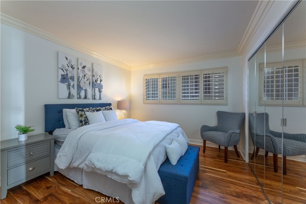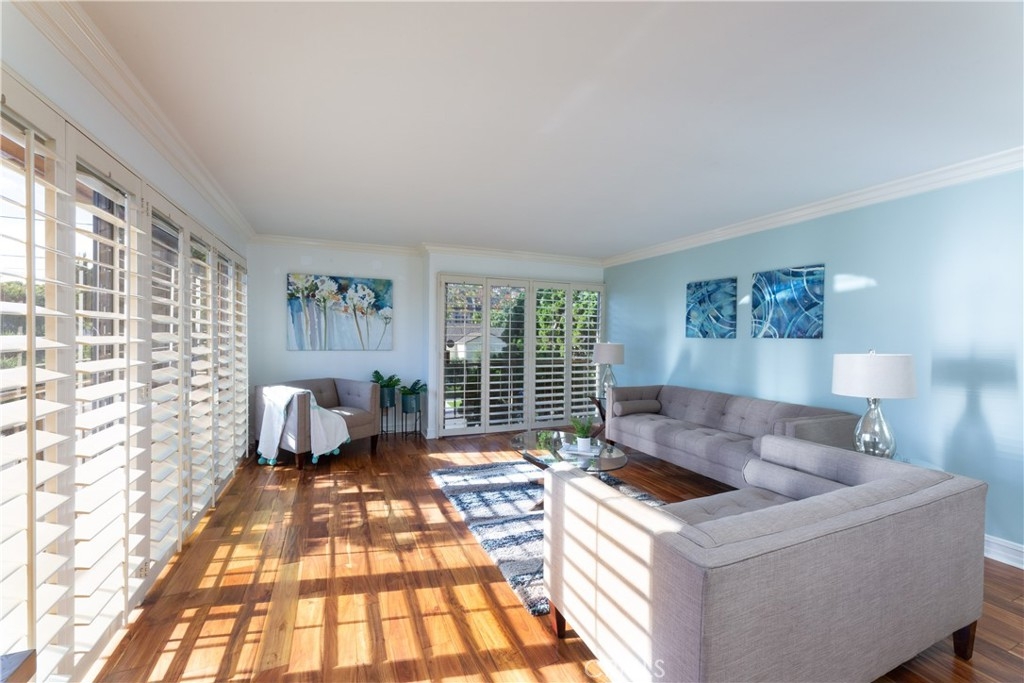 Only 1 block from Bluff Park, the ocean, running and biking trails, this beautiful end unit is located in a quiet neighborhood, with tree lined streets. Large and light, this unit has wood and travertine flooring, crown molding, peek-a-boo ocean and bluff views, and a large living room with floor to ceiling windows on two sides. Located between Belmont Shore and Downtown Long Beach, the home has easy access to all the Long Beach waterfront has to offer. Make it a habit to catch the sunset over the ocean every evening, just 1 block away. The galley kitchen has granite countertops, a double oven, Bosch dishwasher, and lots of storage. Full size side by side washer and dryer in closet in primary bathroom, along with a newer water heater (2020). Two side-by-side parking spots in the enclosed garage, with storage. Building has community laundry, as well as an elevator, and controlled access. 2nd floor walkway has extra security with recently installed railing. With easy parking, tons of storage, a fabulous location, and gorgeous natural lighting, you will love calling this place home. NOTE: HOA limits the number of units that can be rented, and the complex is at capacity, as it has been for several years. Unit MUST be owner occupied. (more photos coming 1/3/23)