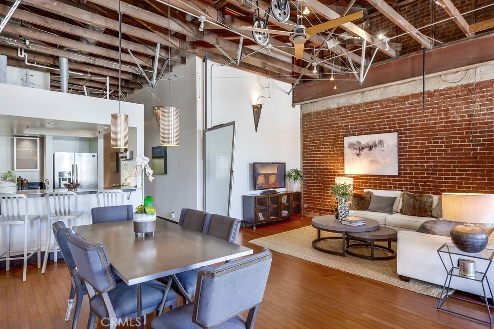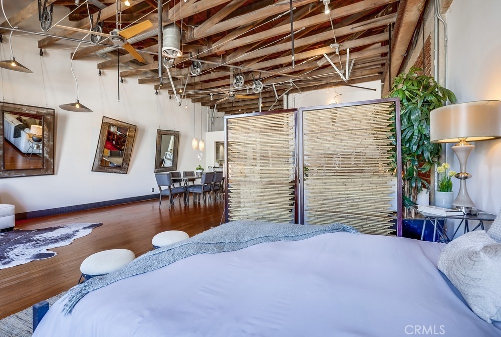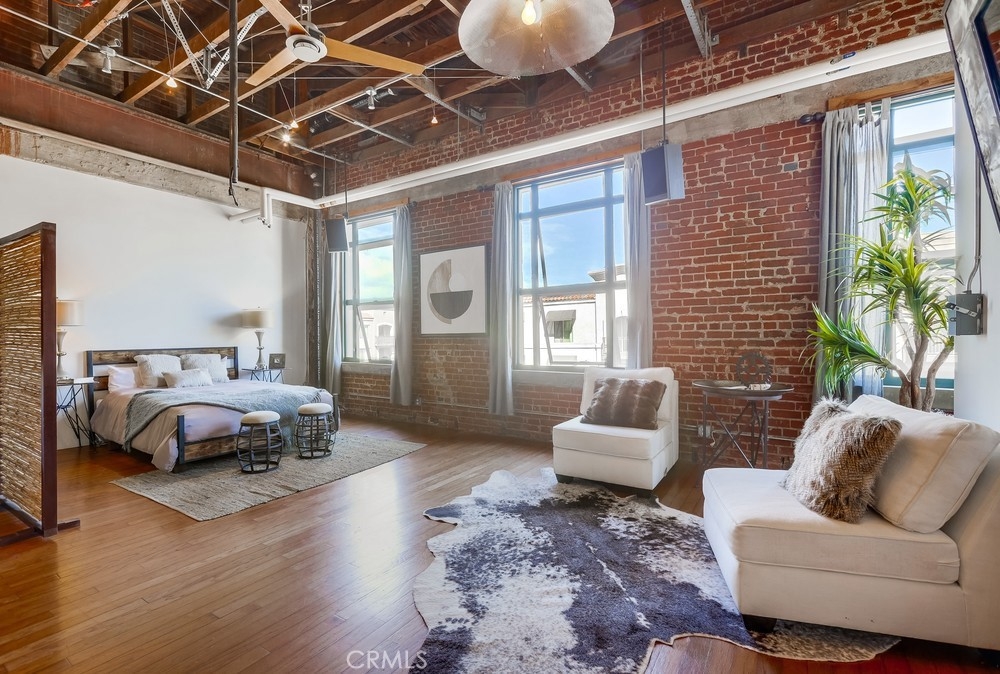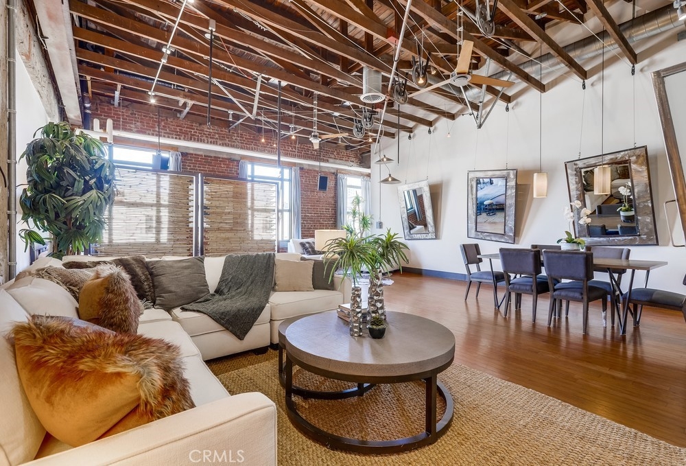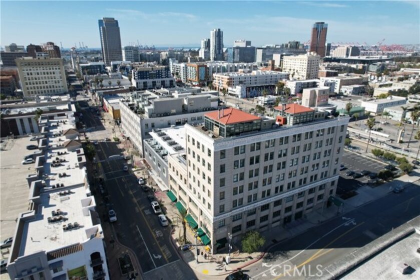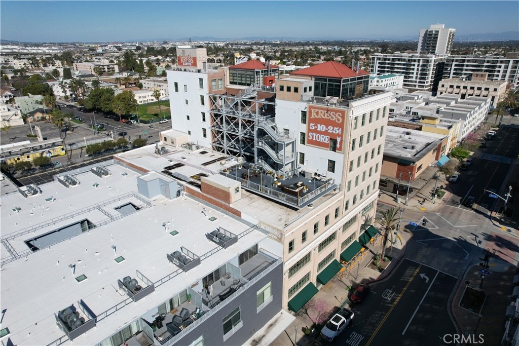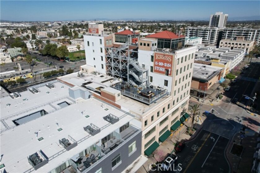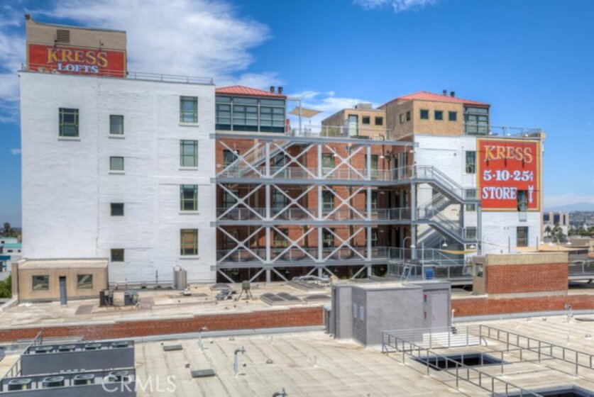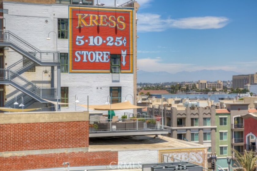Kress Lofts, a Long Beach Landmark. Built in 1925 and converted into lofts in 1995, this is a one-of-a-kind property. This spacious loft is one of the most beautiful units in the building, featuring 15-foot ceilings with exposed roof rafters. An expansive 1,412 sqft space is easily converted into a two-bedroom layout, and a second bathroom could also be added. Offering an expansive open floorplan master suite, vaulted ceilings, hardwood floors, walk-in closet and ample storage. One of the few units in the complex with Central Heat and Air Conditioning. Skylights and three large windows facing Pine Ave provide an abundance of natural light. The Kitchen opens to the large living area and features a massive stainless-steel bar top. In the heart of downtown LB entertainment district, walk to dining, movies, concerts, Metrolink, art galleries, museums, convention center, beach and waterfront. HOA includes secured assigned parking, trash service, security, water, sewer and heating. Enjoy full access to a large community rooftop deck equipped with a gas barbecue , outdoor furniture and a 270-degree city view. The Kress building owners also enjoy significant property tax savings due to the Mills Act designation.