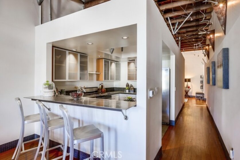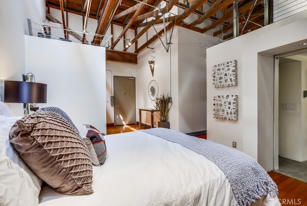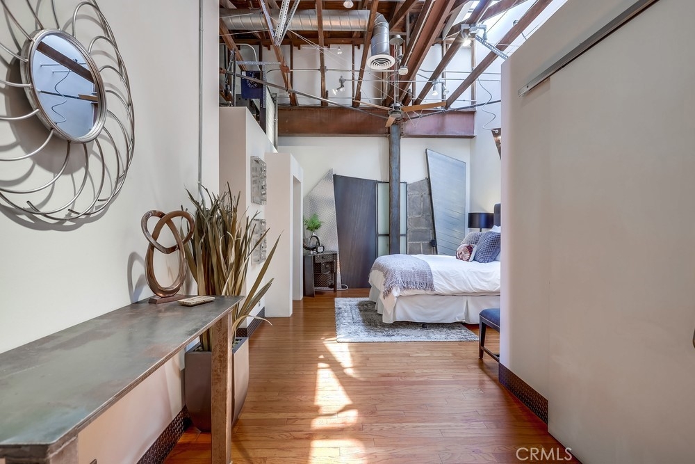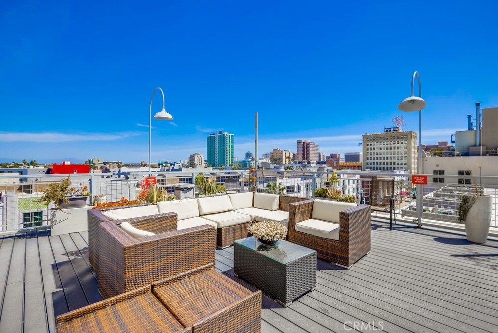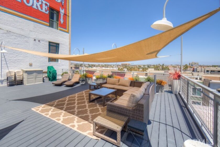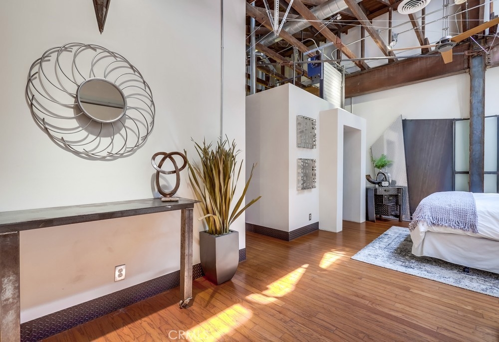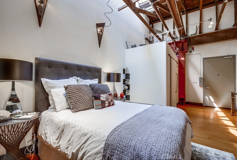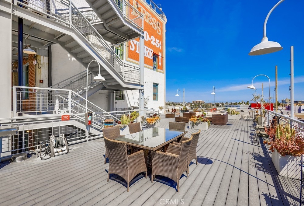 Kress Lofts, a Long Beach Landmark. Built in 1925 and converted into lofts in 1995, this is a one-of-a-kind property. This spacious loft is one of the most beautiful units in the building, featuring 15-foot ceilings with exposed roof rafters. An expansive 1,412 sqft space is easily converted into a two-bedroom layout, and a second bathroom could also be added. Offering an expansive open floorplan master suite, vaulted ceilings, hardwood floors, walk-in closet and ample storage. One of the few units in the complex with Central Heat and Air Conditioning. Skylights and three large windows facing Pine Ave provide an abundance of natural light. The Kitchen opens to the large living area and features a massive stainless-steel bar top. In the heart of downtown LB entertainment district, walk to dining, movies, concerts, Metrolink, art galleries, museums, convention center, beach and waterfront. HOA includes secured assigned parking, trash service, security, water, sewer and heating. Enjoy full access to a large community rooftop deck equipped with a gas barbecue , outdoor furniture and a 270-degree city view. The Kress building owners also enjoy significant property tax savings due to the Mills Act designation.