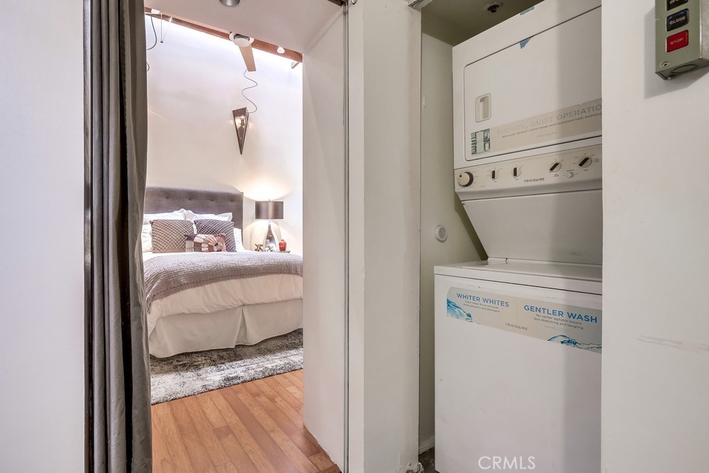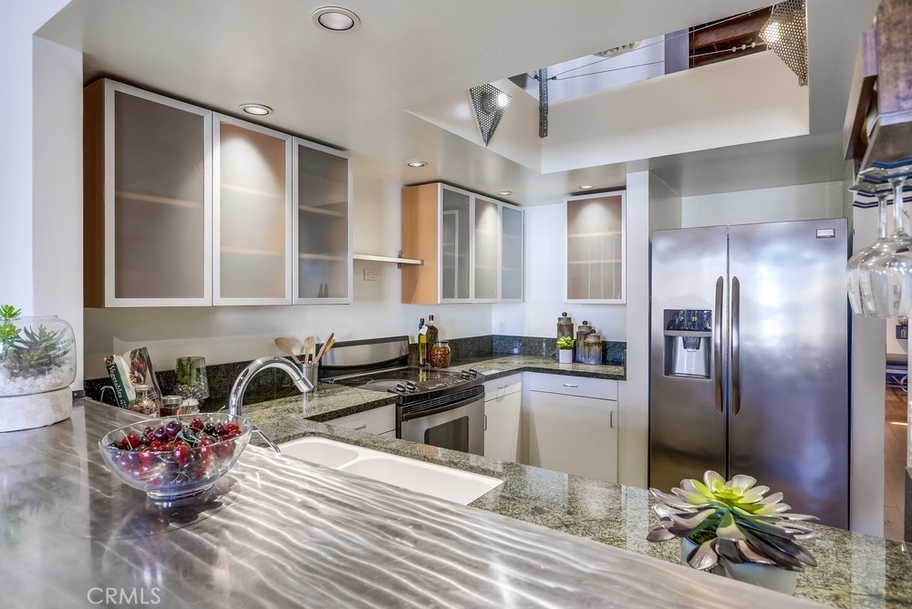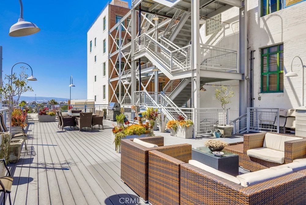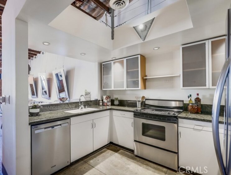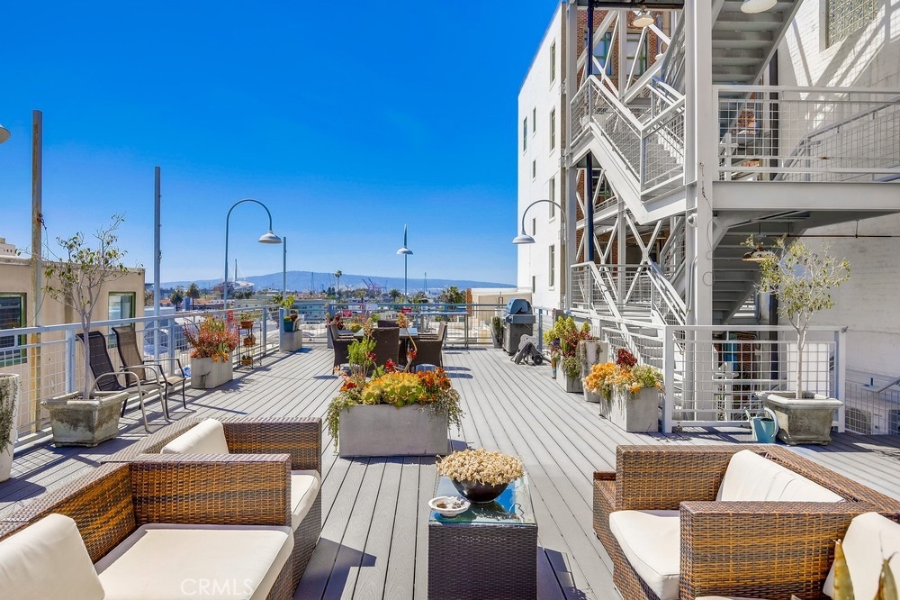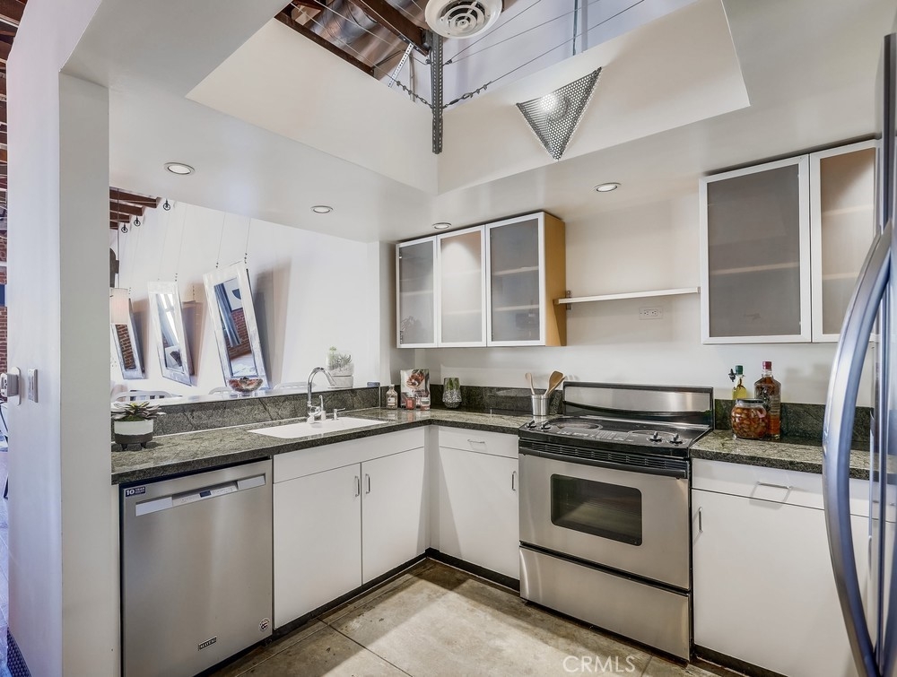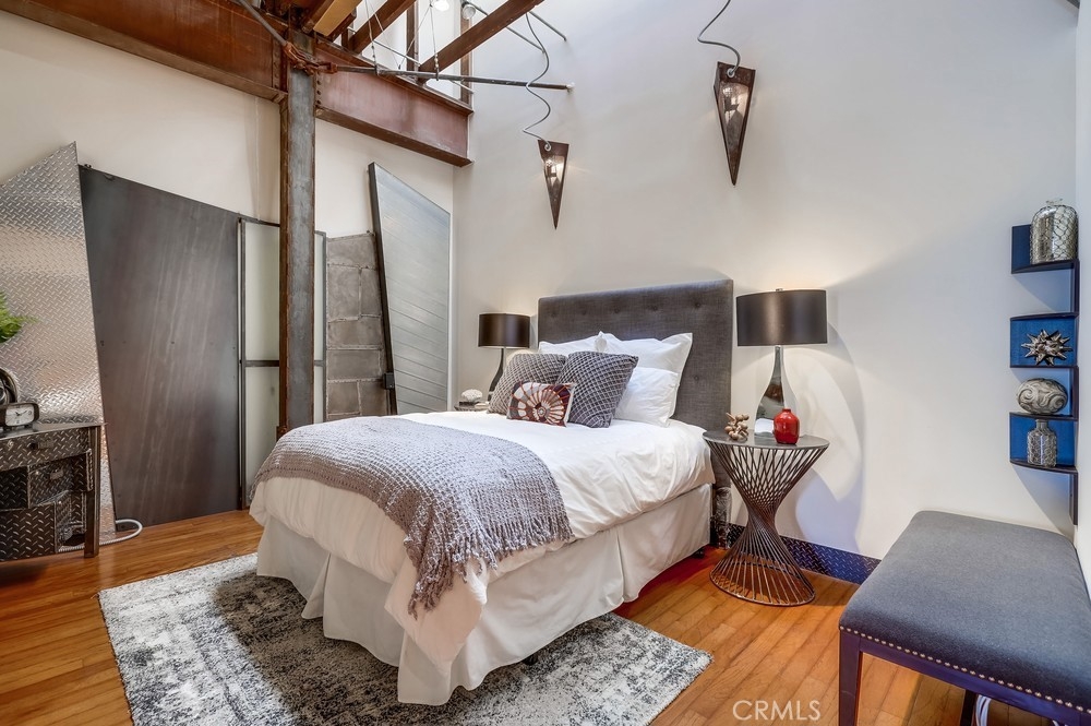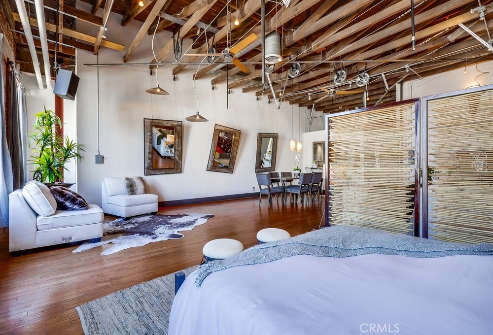 Kress Lofts, a Long Beach Landmark. Built in 1925 and converted into lofts in 1995, this is a one-of-a-kind property. This spacious loft is one of the most beautiful units in the building, featuring 15-foot ceilings with exposed roof rafters. An expansive 1,412 sqft space is easily converted into a two-bedroom layout, and a second bathroom could also be added. Offering an expansive open floorplan master suite, vaulted ceilings, hardwood floors, walk-in closet and ample storage. One of the few units in the complex with Central Heat and Air Conditioning. Skylights and three large windows facing Pine Ave provide an abundance of natural light. The Kitchen opens to the large living area and features a massive stainless-steel bar top. In the heart of downtown LB entertainment district, walk to dining, movies, concerts, Metrolink, art galleries, museums, convention center, beach and waterfront. HOA includes secured assigned parking, trash service, security, water, sewer and heating. Enjoy full access to a large community rooftop deck equipped with a gas barbecue , outdoor furniture and a 270-degree city view. The Kress building owners also enjoy significant property tax savings due to the Mills Act designation.