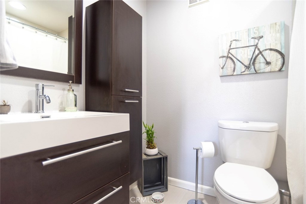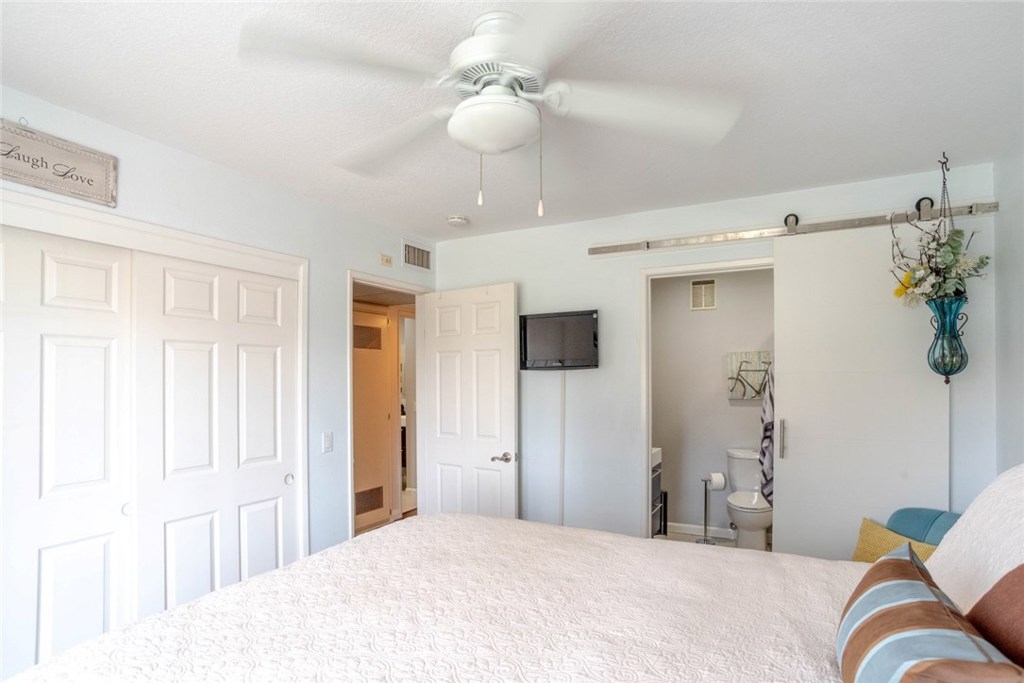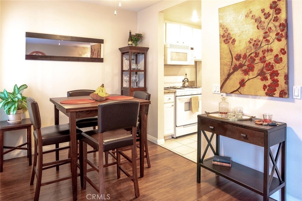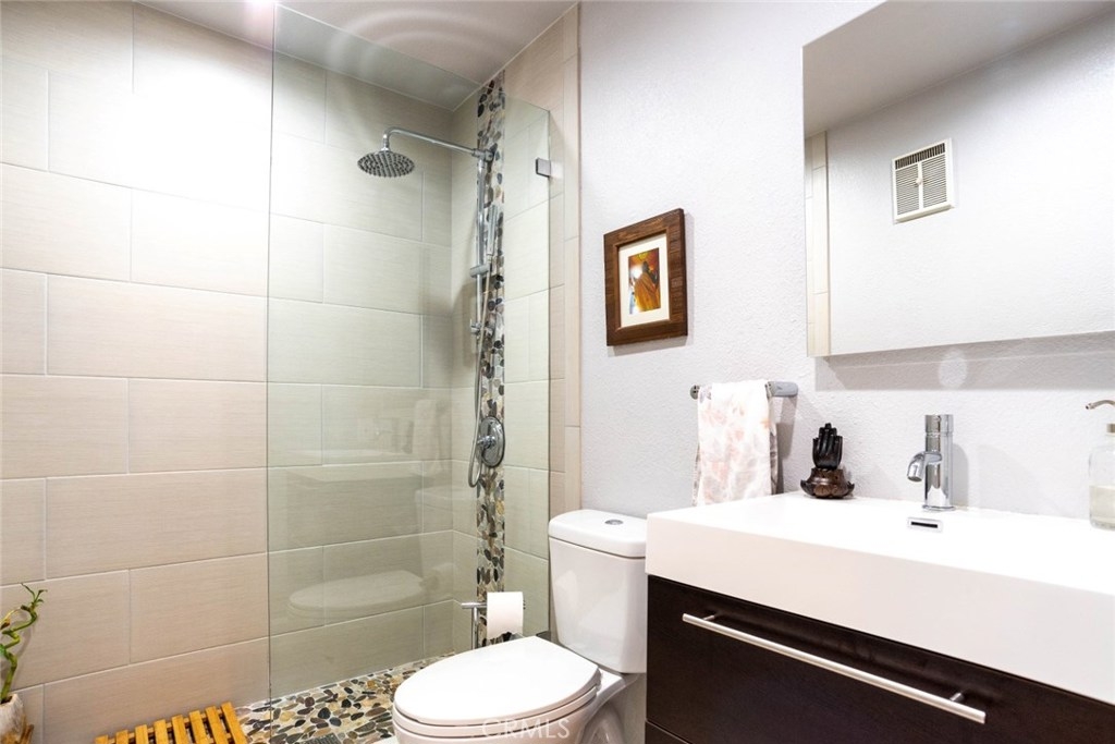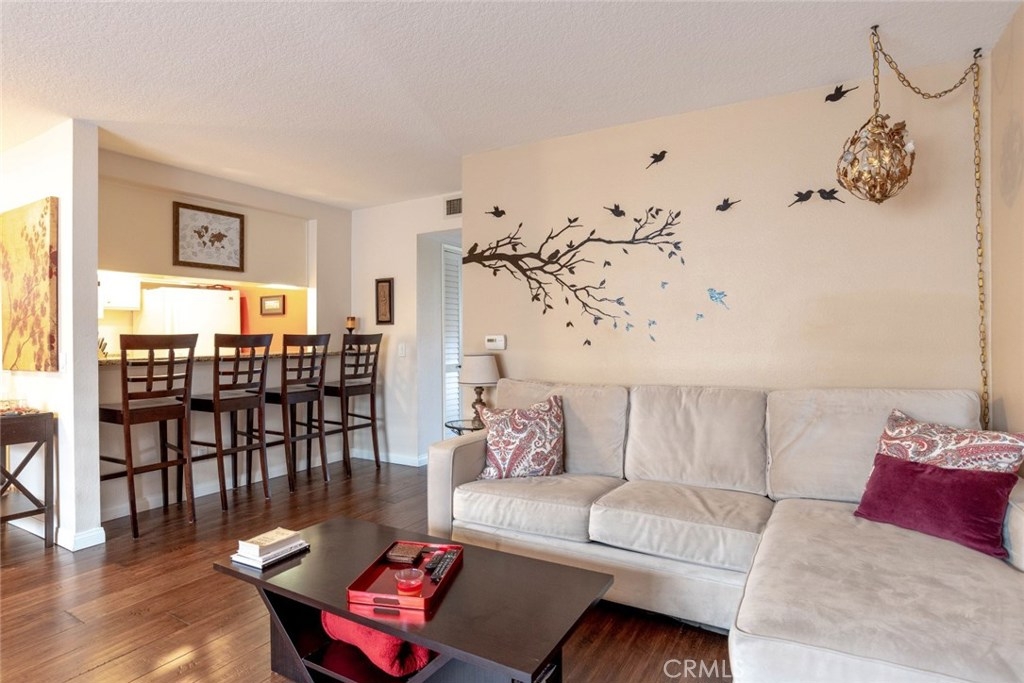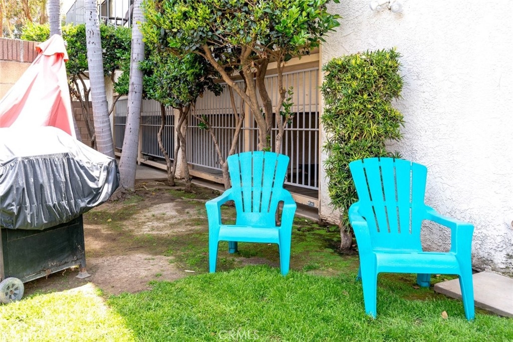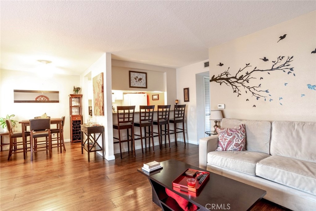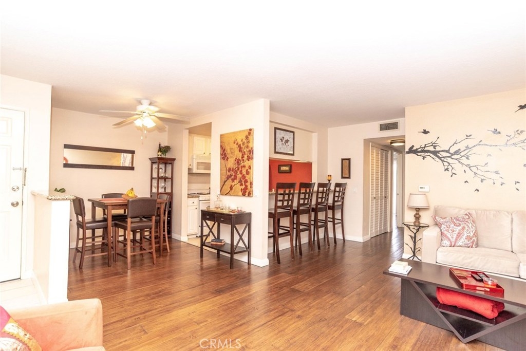 Highly Upgraded Two Bedroom, Two Bathroom Condo with A/C! Beautiful Bamboo Wood Floors Throughout. Kitchen with Granite Counters, Dishwasher, Gas Stove, and Microwave Oven Overlooking Large Living Room with Custom Shutters. Main Bathroom Completely Remodeled Featuring Porcelain Tile and Doorless Shower. Master Retreat with Private Balcony, and Remodeled Bathroom with Porcelain Tile. Convenient Inside Laundry. Two Car Secure Parking with Private Storage Unit. Large Shared Yard with Comfortable Seating and BBQ. Perfect for Entertaining. Walk to Recreation Park, Golf Course, Tennis Courts, and Much More.