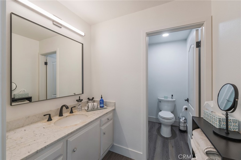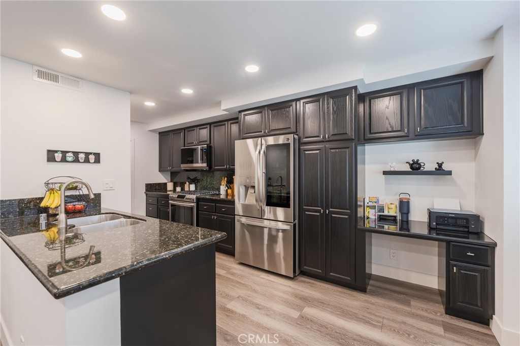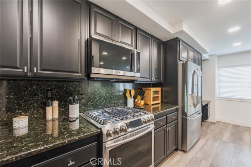 Highly upgraded townhome with two spacious primary suites located in the private Bixby Hill Gardens community within Bixby Hill, with the potential to easily convert the layout into a third bedroom if desired. Soaring vaulted ceilings and an abundance of natural light give the home an open, airy feel from the moment you walk in. Completely remodeled from top to bottom, the interior features luxury vinyl plank flooring, smooth textured walls and ceilings, recessed LED lighting, new baseboards and casings, updated outlets and switches, and fresh paint throughout. The remodeled kitchen offers updated cabinetry and appliances, while the bathrooms have been refreshed with modern finishes and sliding glass shower doors. Additional upgrades include newer HVAC, water heater, roof with skylight, new exterior entry doors with electronic locks, motorized window shades, custom built-in bookcases in the living room, and adjustable closet systems throughout. Oversized garage with great storage. Bixby Hill Gardens is a private community with 24/7 security including a manned guard gate and vehicle patrol. Amenities include a pool, spa, tennis courts, pickleball courts, gym, and clubhouse. Ideally located just a short walk to Cal State Long Beach, The Carpenter Center, and Rancho Los Alamitos. Truly turnkey and move-in ready.