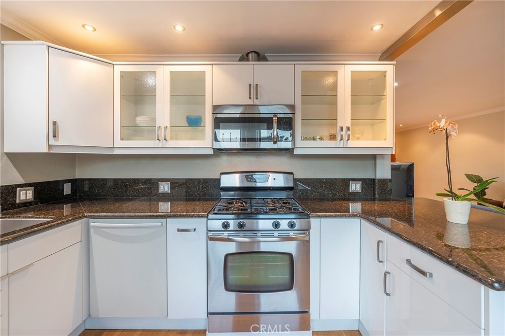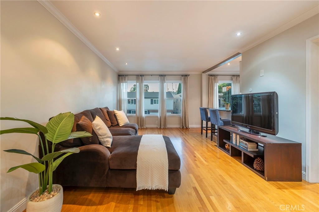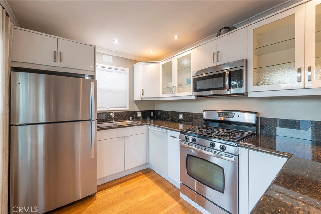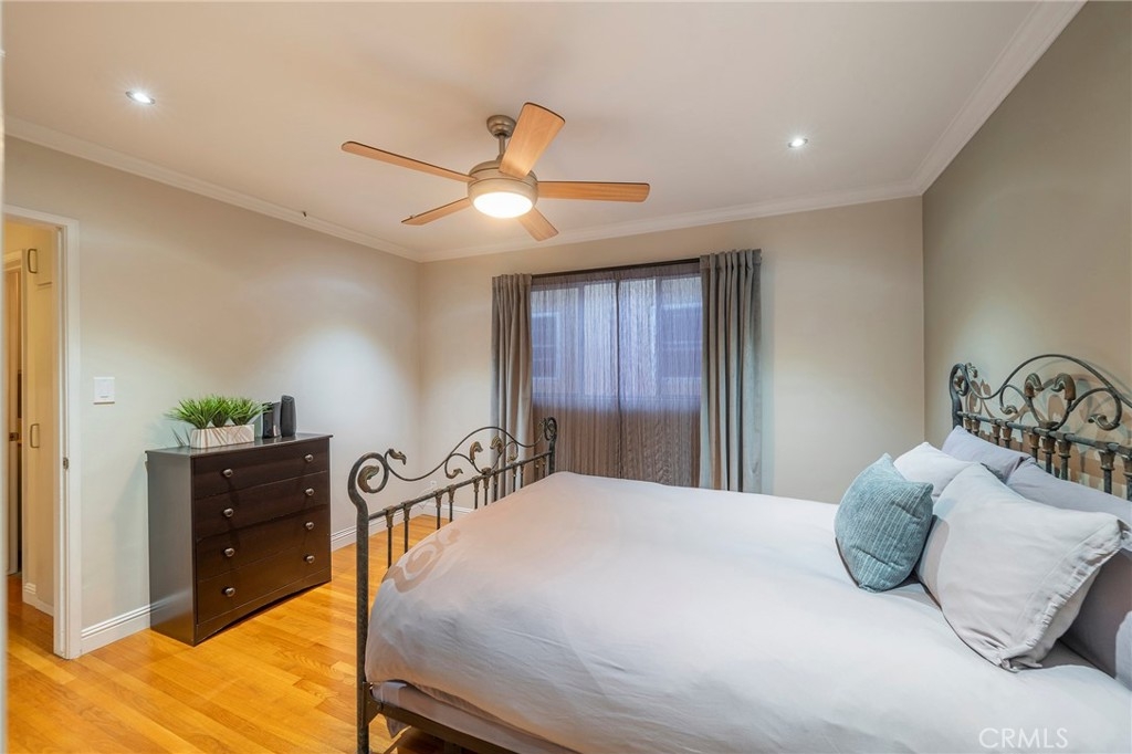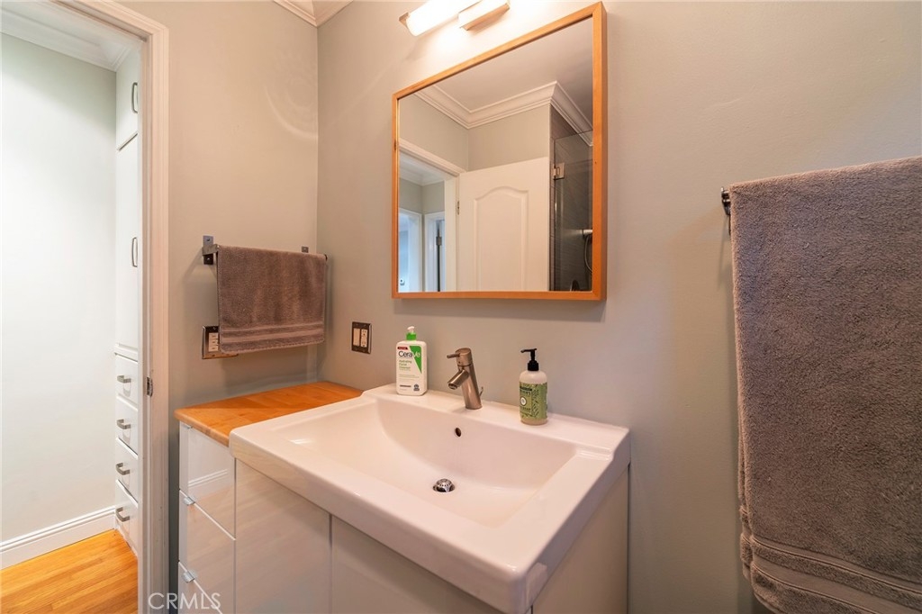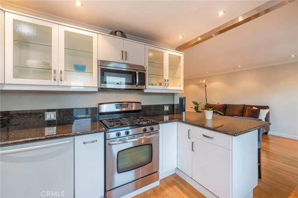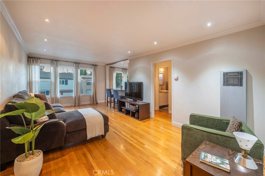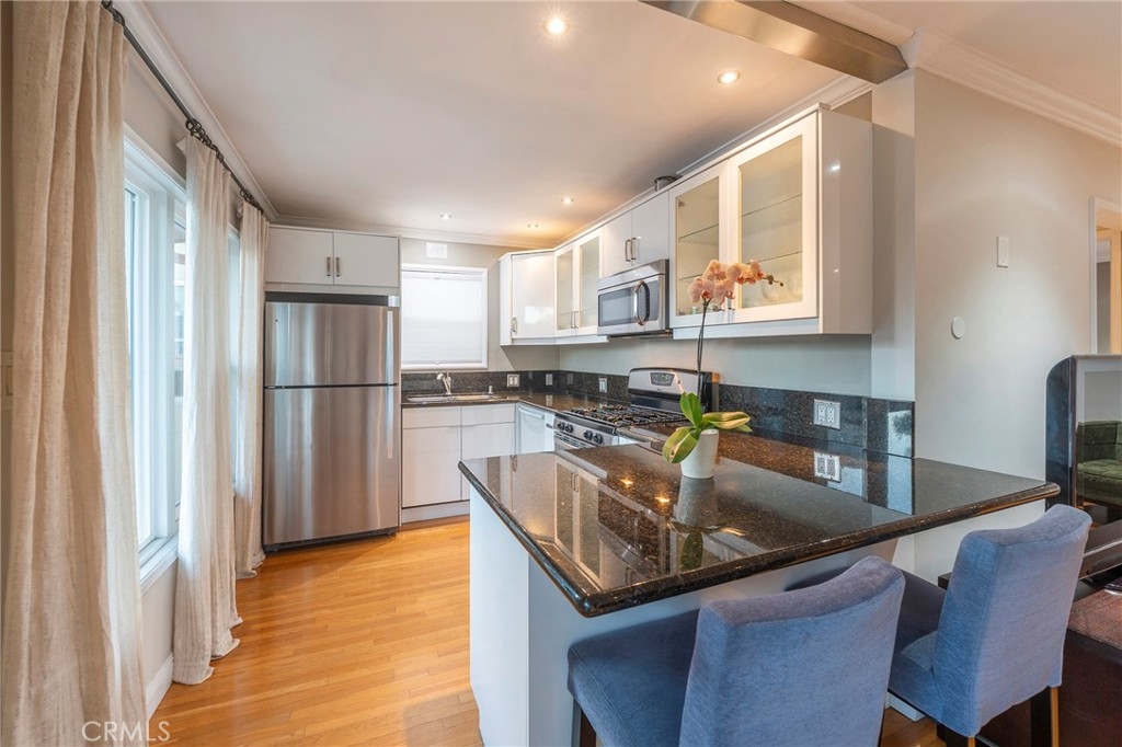 This delightful one-bedroom one-bathroom condo is in the heart of Alamitos Beach, just one block from the water and convenient to all Long Beach has to offer. The condo is a south-facing upstairs corner unit with an abundance of natural light and a beautiful view of the iconic Villa Riviera. Original oak floors, huge windows in front, crown molding throughout, chic kitchen and bath remodels and lots of closet space (including a walk-in closet in the bedroom). The building is exceptionally well maintained and managed. It has been freshly painted, with a lushly landscaped inner courtyard that has been designated a certified hummingbird and monarch buttterfly habitat. The resident community is warm and friendly, with neighbors always willing to pet sit or lend a helping hand whenever it’s needed. Neighborhood cafes and coffee shops abound; downtown Long Beach and Belmont Shore are minutes away.