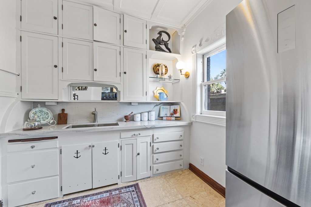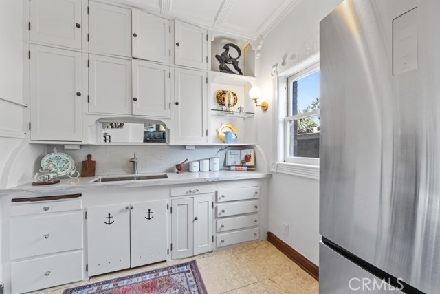 BOM at no fault of the seller. Great Opportunity ! This wonderful property is in the Historic St.Regis Building. Built In 1922 The St. Regis is a breathtaking architectural work of art inside and out. Perched above the beach- with it's own community stairs to the sand below. This lovely unit features fresh paint throughout, crown molding, beautiful kitchen cabinets, with ceiling beams,baseboards,window and door casings. NEW kitchen quartzite counter and backsplash, NEW sink and faucet, NEW stove and fridge. Sleek marble flooring,many period details,plenty of storage space with built-in closet plus shelves and the sleeping alcove will fit a queen size bed. The bathroom tub was reglazed and new vanity with faucet were recently done. Livingroom windows were replaced and a new convection heater was installed on the wall. This meticulously maintained historic building offers residents two private beachside patios(One on the sand with private beach access!) Perfect for barbecues,entertaining, catching a sunset or just relaxing. Stunning historic lobby with secured fob only access, passenger and freight elevators, large community laundry room,bike room, and storage cubby room. ALL UTILITIES INCLUDED WITH HOA DUES. A Must See! Aggressively priced to sell. Property sold AS IS no credits, no repairs, no termite. No short term rentals under 30 days allowed. STREET PARKING ONLY FOR THIS BUILDING.