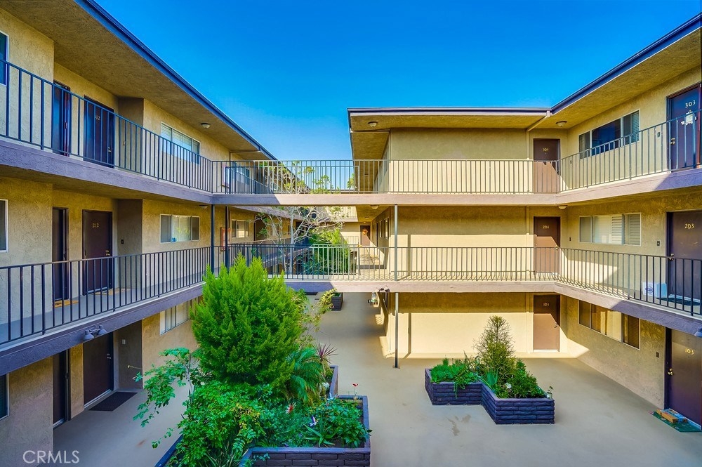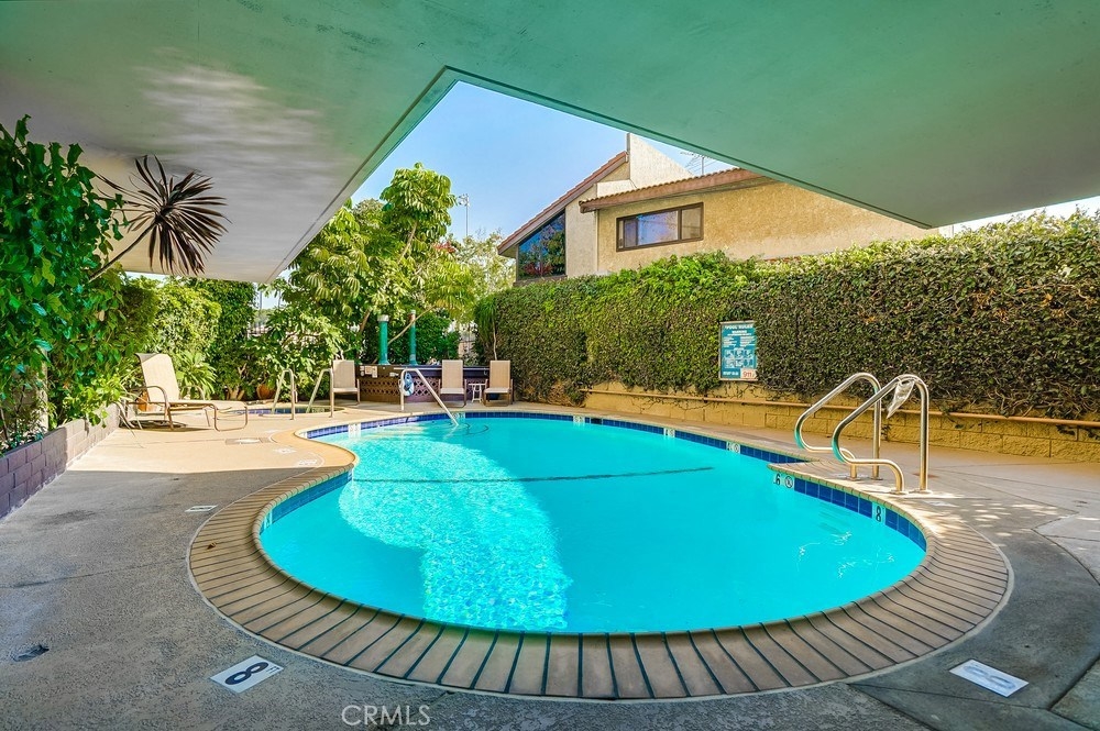 Great location! Move in ready. Spacious 1 bed, 1 bath condo facing a quaint neighborhood on a quiet street. This very light and bright unit has 12' of glass along the living room and out to the balcony. Newer flooring in living and bedroom. The balcony offers neighborhood and sunset views. Kitchen comes with all appliances. This gated community offers a Pool, spa, gated entry along with one garage space and storage above. Close to park and golf course. Located on quieter, Prospect Ave. side of building. Community card operated laundry located on each floor. Low HOA. Located close to the community activities and golf course.