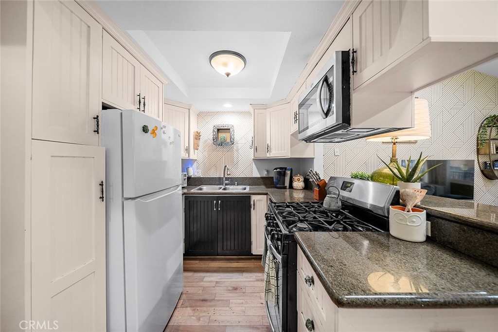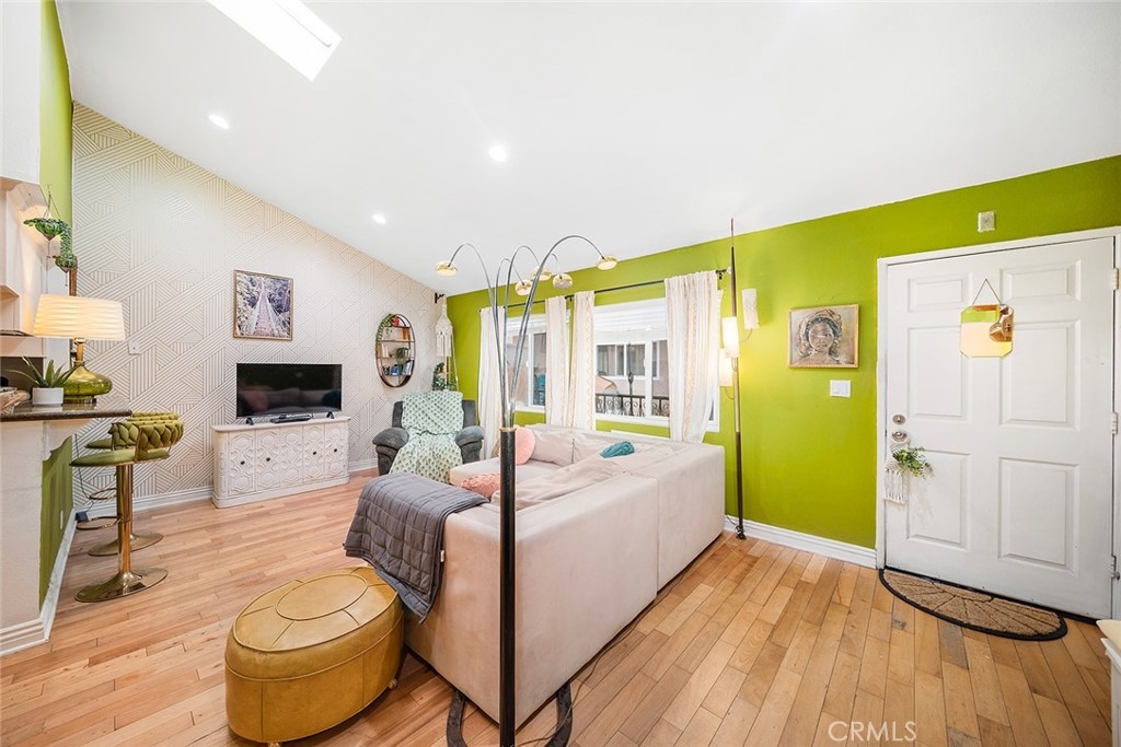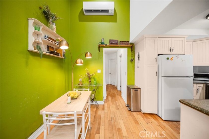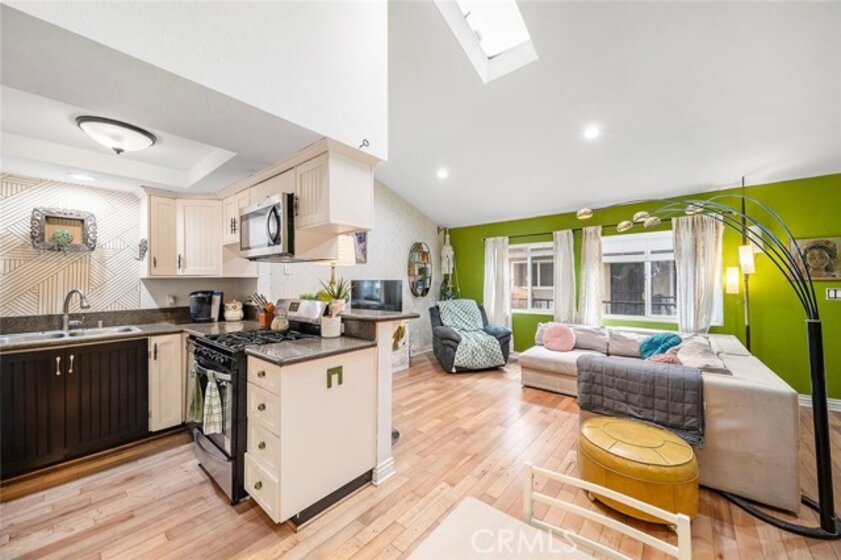 This is a small private complex with secure gated entry and gated parking garage. Ideal for first-time buyers or investors, this home comes equipped with a refrigerator, dishwasher, gas range, microhood, and an in-unit COMBO washer/dryer for ultimate convenience. Enjoy the open feeling of vaulted ceilings and abundant natural light from the skylight in the living room, complemented by elegant hardwood floors in both the living area and kitchen. Both bedrooms feature new carpeting, and both bathrooms both have tiled shower walls. The primary bedroom also has vaulted ceilings and a dedicated AC Split for ultimate comfort as well as access to the attic, which has been sheeted with plywood for storage or separated space with a dedicated pull down staircase. This condo is ready for you to personalize and make it your own. Step outside to a dedicated gated front patio—perfect for soaking up the Long Beach sunshine or dining alfresco. Additional highlights include two dedicated parking spaces in a secure garage, each with extra overhead storage, plus access to a community laundry facility in addition to your private in unit laundry area. The building offers controlled access for added peace of mind. Don’t miss this opportunity to own a wonderful home in a location that allows easy access to dining, and a short distance from the beach and the freeway!