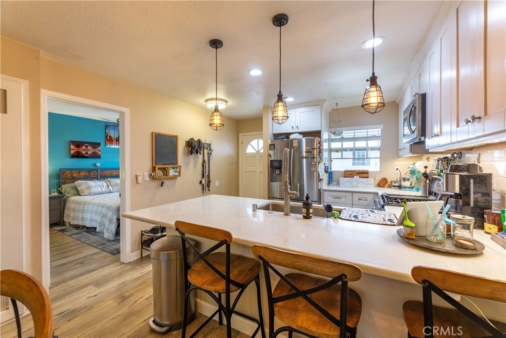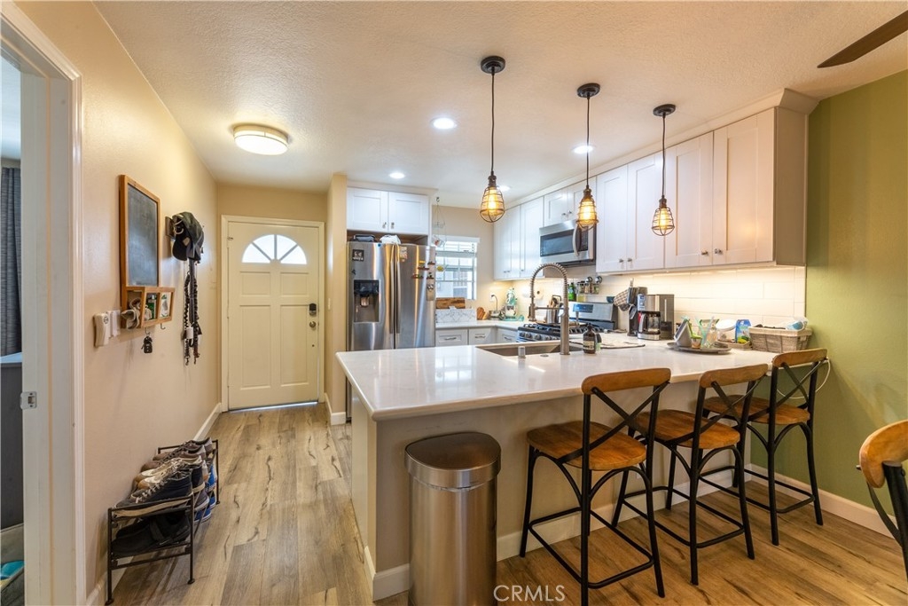 Beautifully Remodeled top floor unit offering an open floor plan, cathedral ceilings and an abundance of natural light. The Spacious Living room with Fire Place Opens to a private deck with new LG washer and dryer in the laundry room. Enjoy your newly remodeled kitchen, soft close cabinets with led lighting and a smooth quartz countertop. All new Samsung Appliances Refrigerator, Stove, Microwave, and Dishwasher. New Laminate Flooring throughout. The Master bathroom is completely remodeled with a porcelain tile shower, new vanity, faucets, light fixtures, and mirror. The second bathroom completely remodeled with ceramic Tile tub and New Vanity, light fixtures, and faucet. Gated community with 2 car parking included along with storage. The location is ideal to local restaurants, bars and shopping and located close to Cal State Long Beach.