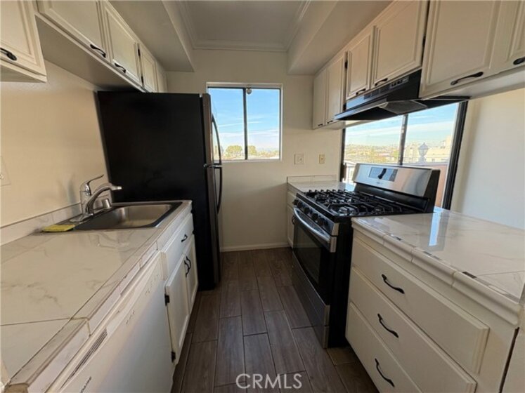 Welcome to this top-floor, corner 2-bedroom, 2-bath condominium offering privacy, natural light, and desirable neighborhood views. Freshly updated with new interior paint and brand-new refrigerator and dishwasher, this residence is move-in ready and thoughtfully designed for comfortable living. The open living area is bright and airy, enhanced by the corner location and two private balconies (wrap around), perfect for enjoying morning coffee or evening breezes. The kitchen and both bedrooms enjoy pleasant neighborhood views, creating a light and welcoming atmosphere throughout the home. Both bedrooms are well-proportioned, including a primary suite with its own bath, while the second bedroom offers flexibility for guests, a home office, or additional living space. Two assigned parking spaces provide convenience and added value. Situated in the front of the community with controlled access, this top-floor unit offers the benefits of no neighbors above, excellent airflow, and a quiet setting. Conveniently located near downtown Long Beach, shopping, dining, and major transportation routes, this is an outstanding opportunity for both owner-occupants and investors alike.