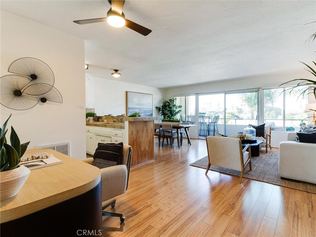 Experience coastal living at its finest in this beautifully updated Top Floor 1-bedroom, 1-bathroom condo located in the highly sought-after Alamitos Beach neighborhood of Long Beach. This bright and inviting home features an open floorplan that seamlessly connects the kitchen, dining, and living areas—perfect for entertaining or relaxing after a day at the beach. The modern kitchen boasts a spacious peninsula with bar seating, ideal for casual meals or hosting friends. Enjoy your morning coffee or evening glass of wine on the generous balcony, where you’ll be treated to stunning city light views that sparkle after sunset. The large bedroom offers plenty of natural light and closet space, while the spacious bathroom offers a separate bathtub and shower area. Additional highlights include one assigned parking space, secure building access, and proximity to the beach, local cafes, restaurants, and the vibrant nightlife of Downtown Long Beach. Whether you’re looking for a primary residence or a coastal retreat, this Alamitos Beach gem perfectly blends comfort, convenience, and city charm.