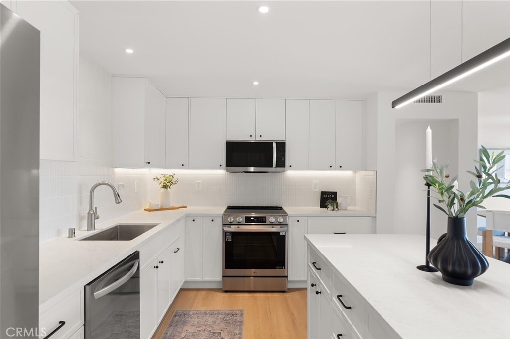 Motivated seller! The seller may offer credit toward the buyer’s closing costs or a rate buydown. Come and see this one-of-a-kind, beach-facing condo, with an expansive 550 sqft of exclusive outdoor private patio. This meticulously renovated 2-bedroom, 2-bathroom condo offers 1,034 square feet of smart living space, artfully designed with contemporary elegance and functionality with only one shared wall. Step inside and be greeted by the pristine ambiance of 100% new interiors. Every detail has been considered, from the new plumbing and water lines to the sleek flooring and trim. The bathrooms and all fixtures have been completely reimagined, showcasing the finest Kohler bathroom sink fixtures, toilets, and a luxurious master vanity. The heart of this home is the stunning kitchen, featuring all-new stainless steel appliances, including a 30” induction range, microwave hood vent, dishwasher, and refrigerator. The undercabinet LED lighting highlights the exquisite quartz countertops and custom cabinetry, creating a perfect blend of style and utility. Enjoy the comfort of a new heating and AC system, controlled via a smart Nest thermostat, ensuring your home is always at the perfect temperature. The living spaces are illuminated by all-new LED recessed lights, enhancing the modern aesthetic throughout. The exclusive-use side gate provides convenient access for your guests, making entertaining a breeze. This midrise residence offers a wealth of amenities, including a common area garden, barbecue area, elevator, secure garage with assigned parking, laundry facilities, bike room, security gate, and a comprehensive security system, all ensuring a lifestyle of convenience and peace of mind. Experience the elegance of coastal living with the sophistication of a smart, modern home at 1200 East Ocean Boulevard. Don’t miss this opportunity to make this exquisite condo your own!