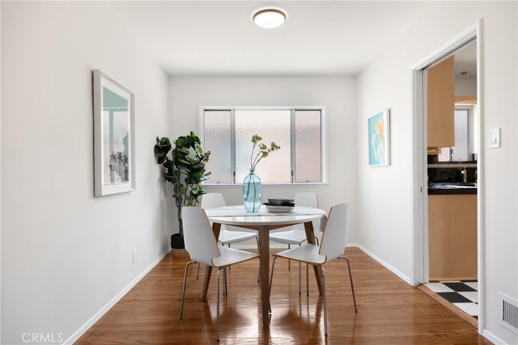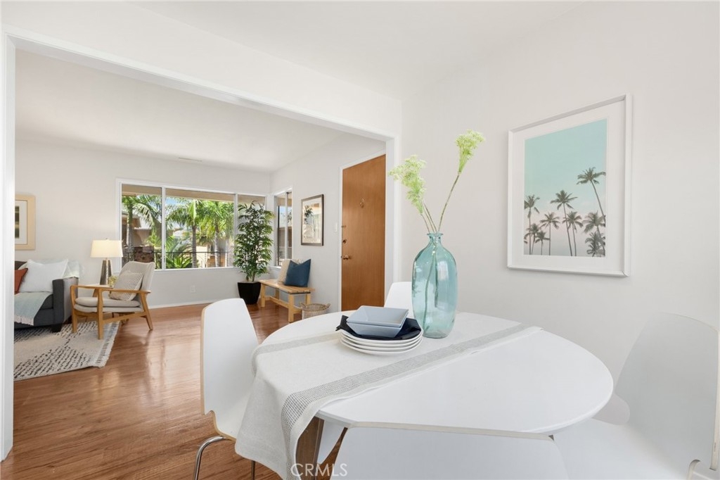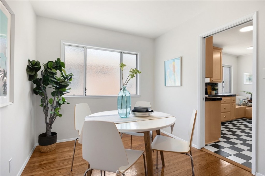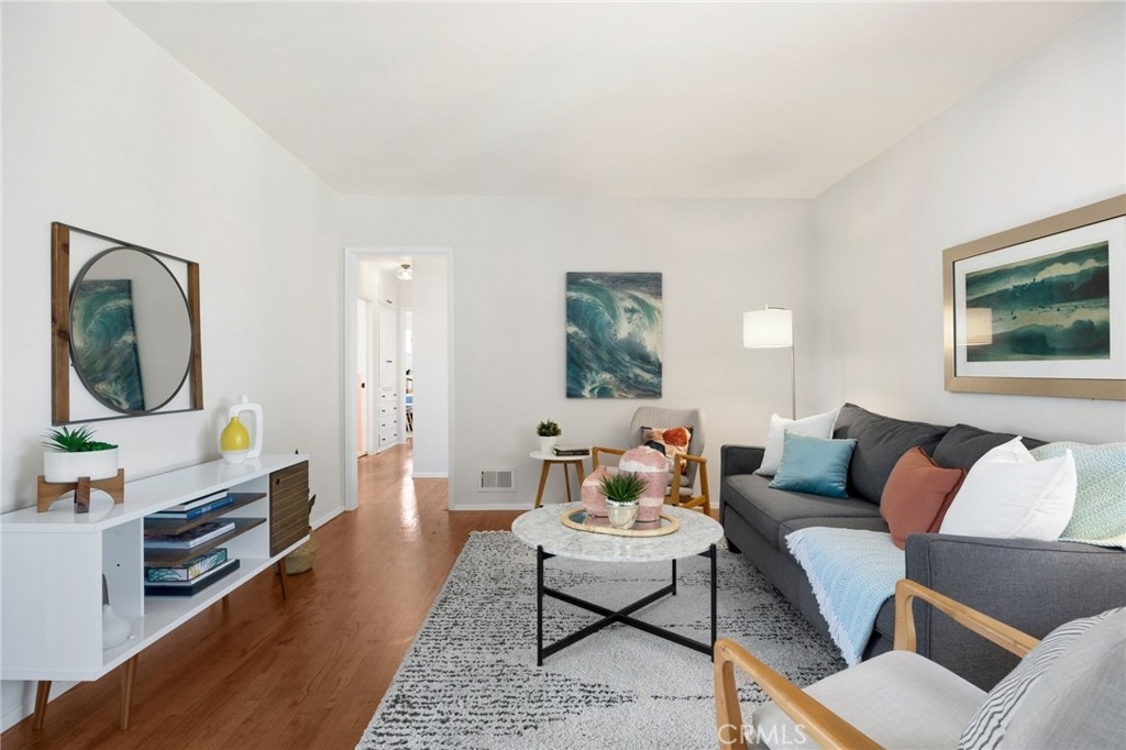 Welcome to this top-floor gem! The deco inspired Moana Imperial is located in the heart of Alamitos Beach. This charming condo offers more than just a home—it's a gateway to coastal living at its finest. Step through the secure gated entry into a community that feels like a private retreat, complete with lush courtyards and an inviting common area. The exterior of the building was recently painted and refreshed. Inside, you're greeted with an inviting and open floorplan, gleaming hardwood floors that lead you to a spacious kitchen, ideal for culinary adventures with its ample prep space and cozy breakfast area. The kitchen offers significantly more space than most condos. Host unforgettable dinners in the formal dining area, ideal for entertaining guests or enjoying meals with loved ones. The primary bedroom is a serene sanctuary boasting a convenient half bath and a private balcony. Imagine sipping your morning coffee or unwinding with a good book on a lazy afternoon. With a private one-car garage, parking is a breeze—a rare find in this bustling neighborhood. Plus, being just moments from the beach, top-notch restaurants, trendy shops, and downtown excitement means you're at the center of it all. Whether you're strolling along the shoreline or exploring local hotspots, everything you might need is close by. This is the first sale in the building since 2018, it's nestled within a tight-knit community with little turnover. Don't miss your chance to own a slice of coastal paradise—schedule a tour today and discover why this could be the home you've been waiting for!