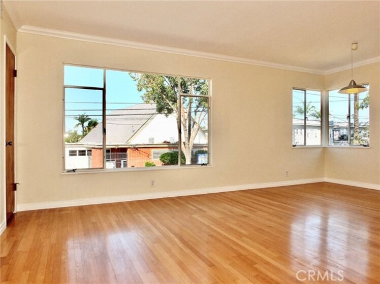 Drop the Mic!! Razor Sharp Large Front Upper Corner Condo with Private Garage and Private Laundry! One bedroom and one bathroom located on the best tree-lined street in Alamitos Beach. Features a highly desirable private one-car garage with remote opener and storage. SECOND PARKING SPACE? Owner may be able to park another car in front of their garage (others have been observed doing this) providing a second parking space but buyer assumes all responsibility. Gorgeous oak hardwood floors throughout this spacious and bright living area. Forced air heating unit installed 1/2024 and ceiling fans. The kitchen includes a gas stove, refrigerator and natural wood cabinetry. Your own private washer/dryer is also in the kitchen or use the common laundry. The bathroom has been updated and tiled. The bedroom is very large with an entire wall of closet space. Only ONE common wall. Tasteful gated Spanish and quarry tile entry shared with only two other units. Garage is on the front of the building immediately under your unit. Access the garage with your remote and make use of the additional storage shelf at the front. Low HOA dues! Included in HOA dues are water (ALL water hot and cold = lower utility bills) and trash. (Second dues are a temporary assessment that sunsets by year end). Located blocks to the beach between downtown Long Beach and Belmont Shore.