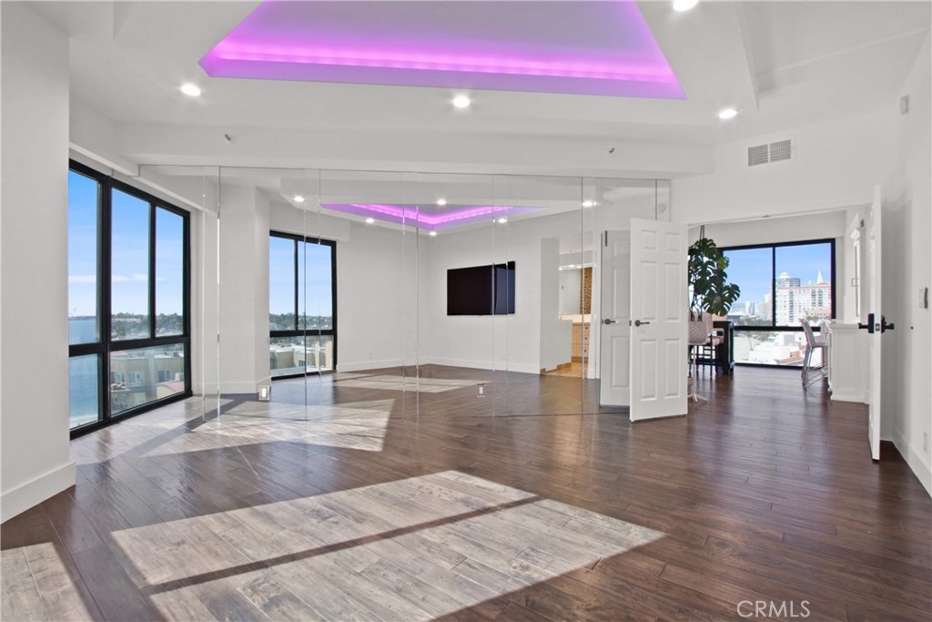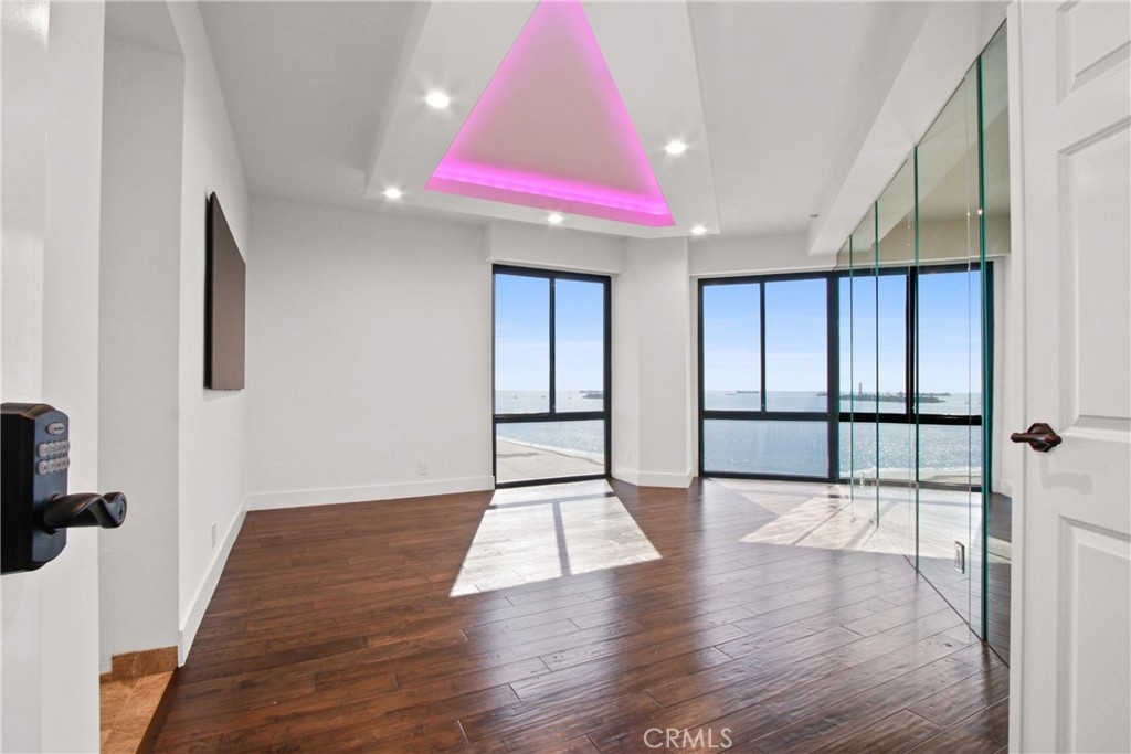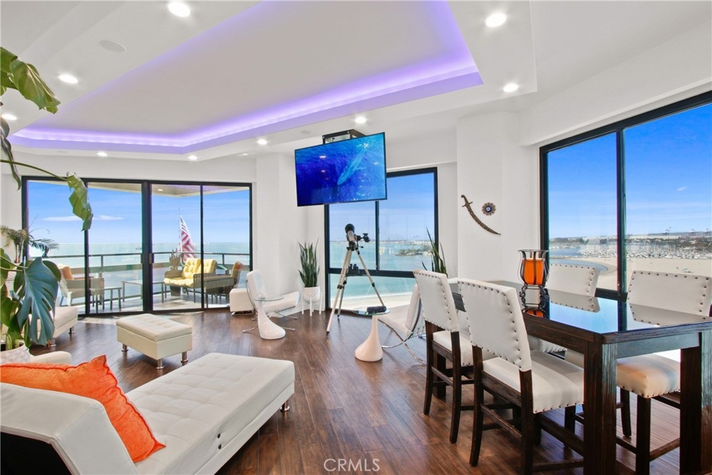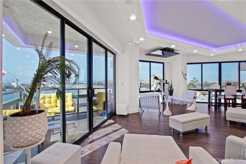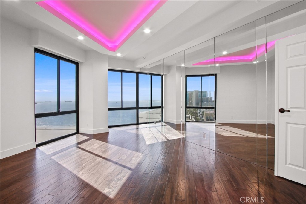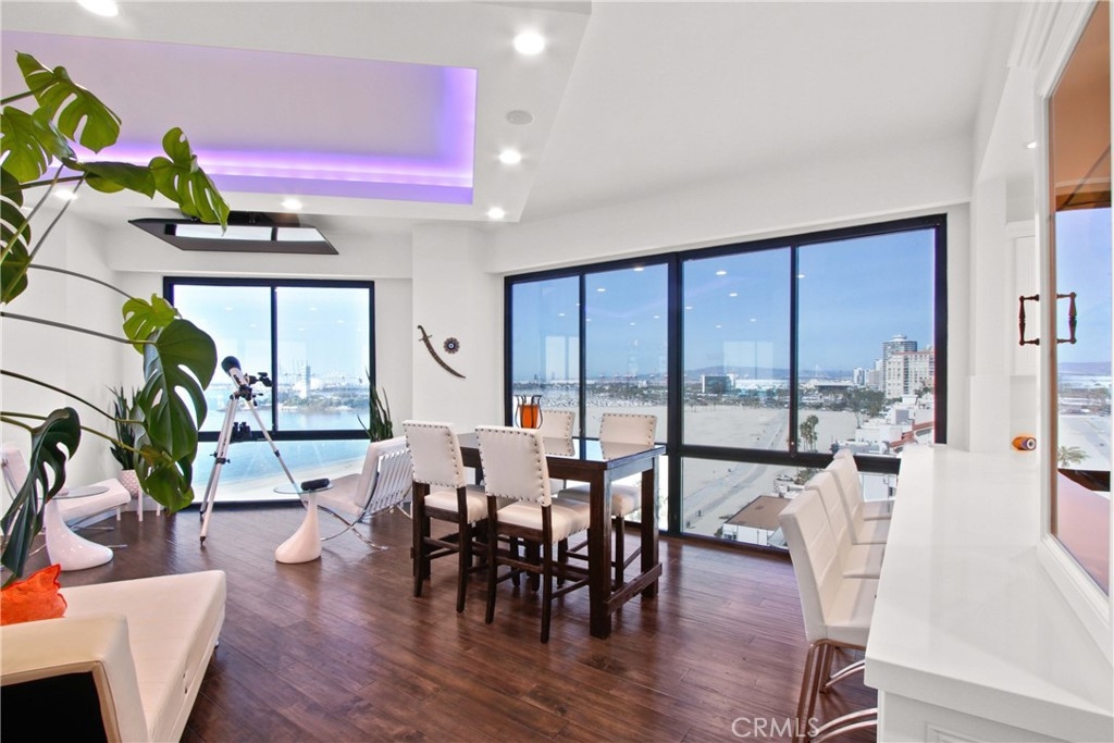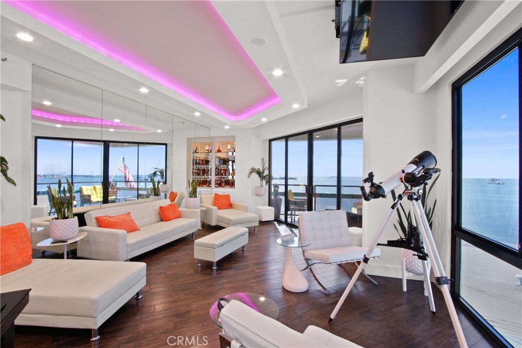 Welcome to Unit #802 at The Ocean Club — where Luxury meets Coastal Lifestyle. Be Mesmerized by the amazing Panoramic Ocean and City light View. This highly desirable Oceanfront Property, one of the properties rarely for sale as owners once in, do not want to part from this amazing location, and these great amenities... Our 8th-floor corner unit offers breathtaking panoramic views of the coastline, Catalina Island, Long Beach Harbor, and dazzling city lights & Ocean view from every room. You can witness Sunrise to Sunset in this lovely condo. This 2 bed, 2 bath residence has been beautifully remodeled with new high end Hardwood flooring, fresh paint, crown molding, custom window treatments, and an open floor plan perfect for entertaining. The chef’s kitchen boasts elegant Quartz counters, white modern contemporary designed cabinets, stainless steel appliances, elegant backsplash, and a built-in Thermador espresso machine. All windows are elegantly decorated with automated rolling window coverings for a modern and sleek look. TV is mounted to the Ceiling to keep the Soaring Ocean Views, and Built in Surround Sound system is hidden in the ceilings behind the amazing Lighting created for an changing ambiance, for any mood... The primary suite features dramatic ocean views, a spa-like bathroom with jetted tub, frameless glass shower, dual vanities, and a walk-in closet. Second bedroom includes a walk-in closet and city views. In-unit laundry, 2 side-by-side garage spaces, and extra storage complete the package. For your Resort Style Living, The Ocean Club Amenities Include: • 24/7 security & doorman • Heated pool, spa, gym & sauna • Beachfront rec room & BBQ area & Cabana Room, Club House • Direct beach access & pet-friendly grounds Live only steps from Shoreline Village, Belmont Shore, The Pike, The Marina, bike paths, and more. Don't miss out on Resort-style living in one of Long Beach’s most desirable full-service buildings. This will not last, come and be the first to make the offer.