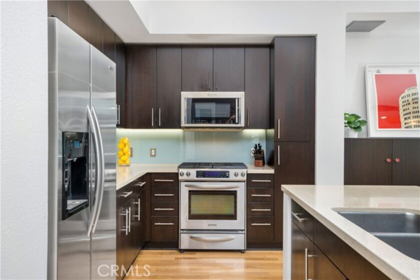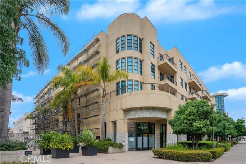 Experience modern urban loft living at its finest in the heart of Downtown Long Beach! Located in the highly sought-after and secure 133 Building along the lively Promenade, this exceptional large 1-bedroom, 1-bath condo blends contemporary luxury with industrial flair—just blocks from the beach and marina. The open-concept floor plan highlights stylish architectural elements including recessed lighting throughout, a custom steel barn door, and double-pane windows with custom blinds. The modern kitchen boasts stainless steel appliances, granite countertops, custom cabinetry, under-cabinet lighting, and a full-size Miele wine refrigerator that holds 102 bottles. Step onto your private balcony your coffee in the morning sun or a glass of evening wine. Additional upgrades include newer central A/C, a large in-unit washer/dryer, and generous closet space throughout. This unit has two side-by-side, secured subterranean parking spaces and a private storage cage. The amenity-rich HOA includes water, trash, internet, and basic cable. Enjoy access to a full suite of community features: a large gym, yoga room, recreation lounge with pool table and big-screen TV, full kitchen, an outdoor bar-style fireplace lounge, secure bike storage, EV charging stations, guest parking, and more. This unbeatable location offers true walkability—attend a concert at the Convention Center, shop at Shoreline Village or the Pike Outlets, explore the Arts District, or relax across the street at the park. Dine at one of the many nearby restaurants or bike to the iconic Queen Mary. Live the vibrant lifestyle you deserve in one of Long Beach’s most exciting and connected neighborhoods.