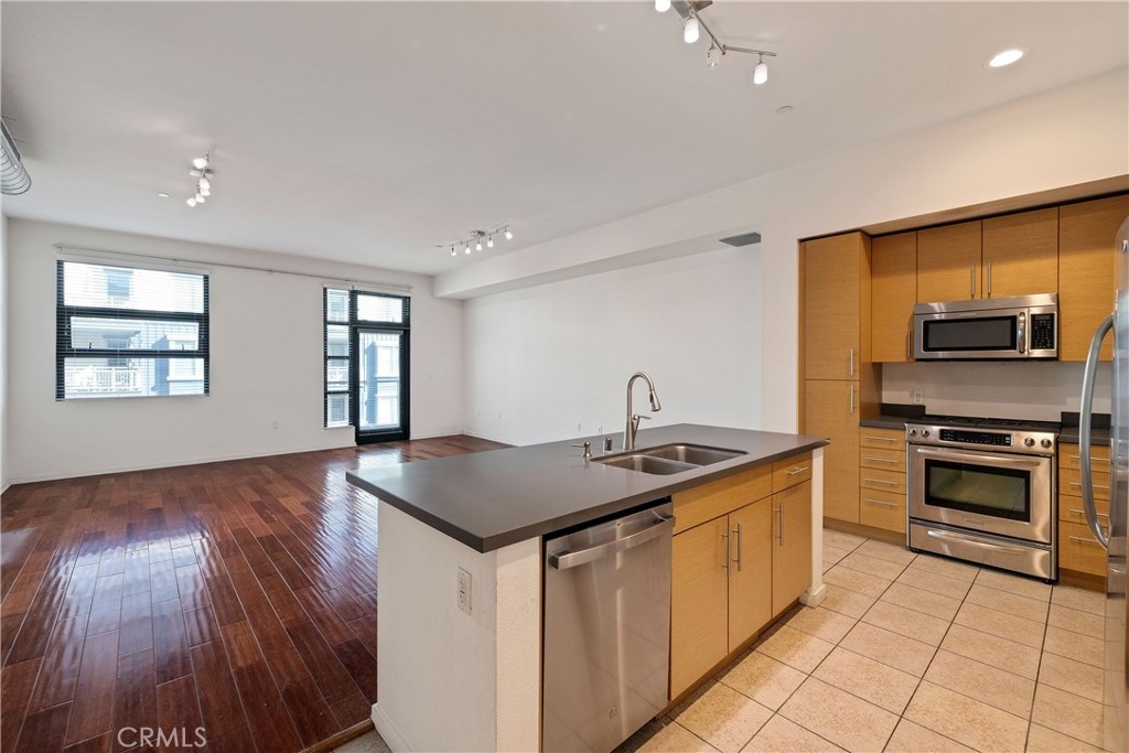Discover the ultimate expression of coastal luxury and vibrant downtown living, where modern design meets the heartbeat of the city. This ultra modern space is far more than a home, it is a lifestyle destination. With an impressive 1,050 sq ft of bold open concept living, this is the largest one bedroom layout in the building and a rare opportunity to live expansively in one of Long Beach’s most desirable urban communities. Vaulted ceilings enhance the airy atmosphere while natural light illuminates every corner. The massive living and dining area with a nook offers flexibility to design the perfect entertainment space, home office, or relaxation zone. Rich hardwood and designer tile flooring add warmth and style, while the quartz gourmet kitchen features stainless steel appliances including a brand new dishwasher. Additional conveniences include AC, in-unit laundry, a modern tankless water heater, and a large hallway storage closet. The spacious bedroom offers excellent storage with double closets. Enjoy Promenade facing views from your private balcony, where you can start your morning with sunshine and unwind in the evening as city lights shimmer. Two gated underground parking spaces plus a significant deeded storage cage provide convenience rarely found in urban living. Located in the exclusive beautifully maintained building, the amenities include guest parking, EV charging, a bike room, a stylish club lounge with a kitchen, television, pool table and shuffleboard, a gym with a yoga studio, and an outdoor courtyard with lounge seating and a cozy firepit. High speed internet, water, trash, and sewage are included in the HOA, providing comfort and ease for homeowners. The location is unbeatable, with the beach, boardwalk, marina, Pike Outlets, Shoreline Village, restaurants, cafes, shopping, nightlife, parks, entertainment, and the Metro line all just moments from your front door. Annual Grand Prix excitement and ongoing waterfront development keep this community vibrant and energetic. Looking toward the future, the 2028 Olympics will bring global attention and major international events to Long Beach including beach volleyball, coastal rowing, sailing, target shooting, sport climbing, handball, canoe sprint, and rowing. Live at the center of world class culture, sports, and coastal excitement. Luxury, location, and lifestyle come together where the ocean meets the city and your future feels inspired.