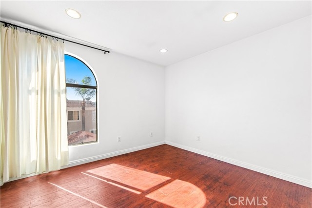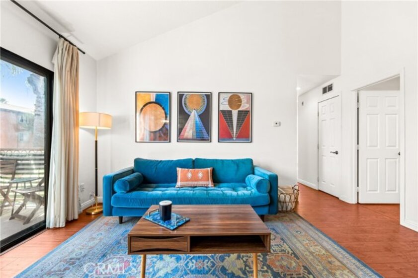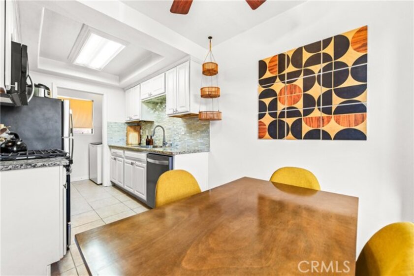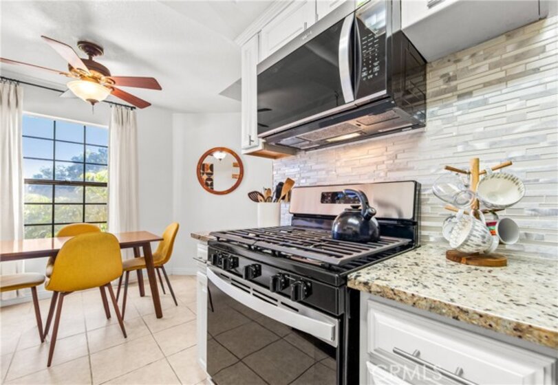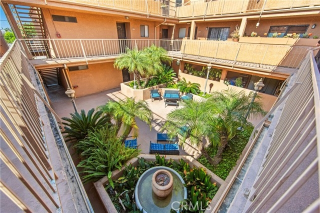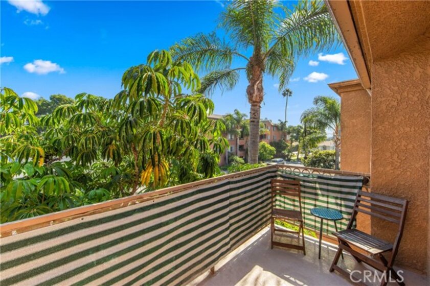 Welcome to this Mediterranean-style condominium located on a quiet cul-de-sac in the heart of Long Beach, less than two miles from the ocean. Unit #203 sits on the second floor of a friendly 24-unit community surrounded by manicured landscaping. Inside, step through the travertine foyer into a bright, open floor plan with vaulted ceilings. This 3-bedroom, 2-bath corner unit features custom laminate flooring, a sunny dining area, and a spacious living room that leads to a newly renovated balcony framed by palm tree views. The remodeled kitchen offers granite countertops, white cabinetry, and brand-new black and stainless-steel appliances are included. A tucked-away laundry room with washer and dryer and a nearby linen closet add convenience. The primary suite includes a walk-in closet and ensuite bath, while the two additional bedrooms feature mirrored wardrobes. The layout feels open and well-proportioned across roughly 1,000 square feet. Additional highlights include two tandem parking spaces in a secure, gated garage with 24-hour surveillance. With Long Beach’s continued coastal growth, this move-in-ready home is an excellent opportunity in today’s low-inventory market.