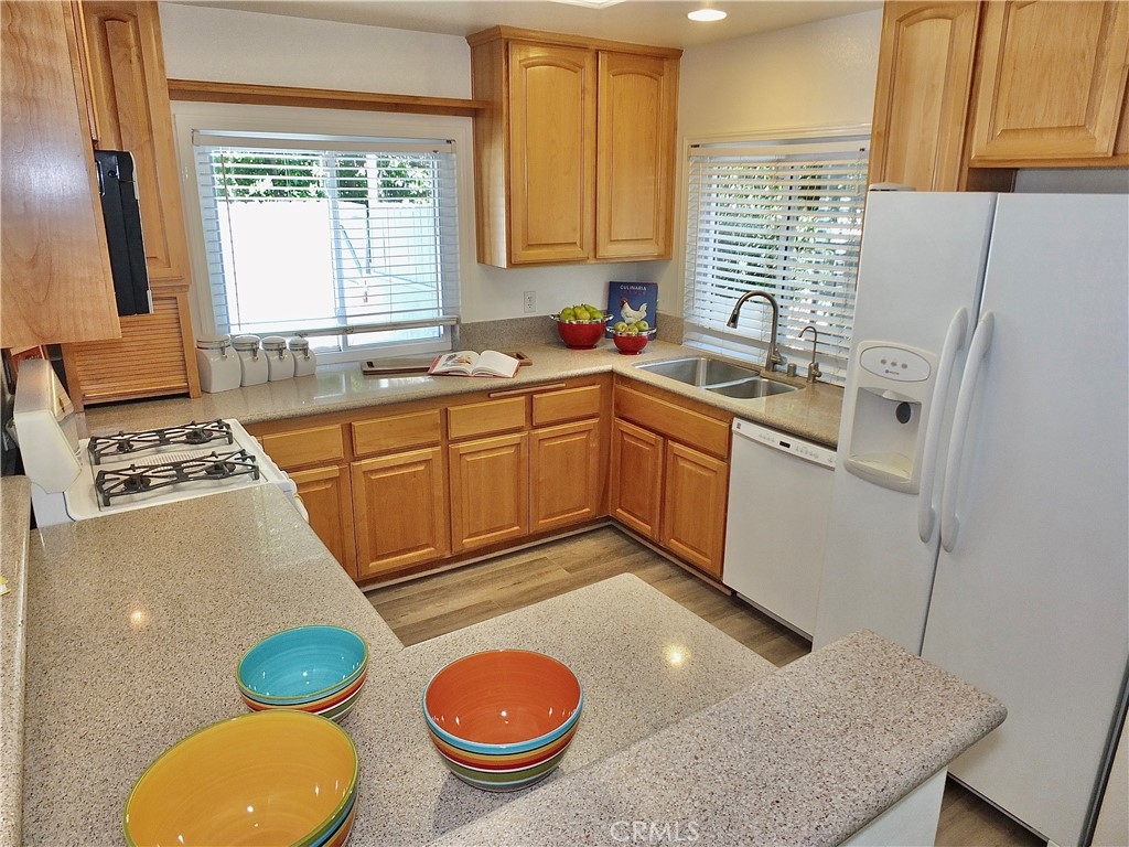1610 Park Avenue Unit D… A 3 bedroom, 3 bath townhome (including a primary suite) nestled amidst towering trees in a quiet corner location with only 1 adjoining wall in Long Beach only moments from Pacific Coast Hwy and the Southern California coast, freeways, the university, plus nearby shopping & restaurants. A lovely garden approach welcomes you to the sun-filled living and dining rooms boasting a classic fireplace, a sliding glass door to the expansive rear patio and a formal dining setting with a dramatic ceiling, display cabinet plus a serving bar from the kitchen with exquisitely appointed appliances, countertops, & cabinetry. Central AC and new flooring are big pluses. Also downstairs is the guest bathroom and laundry room. Ascend the stairs to the treetop view bedrooms (including the primary suite) each with high ceilings and great storage, including a walk-in wardrobe closet in the suite. Enjoy convenient access to the secured garage with 2 spaces. Truly a hidden gem tucked away in Long Beach!