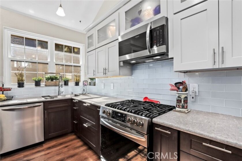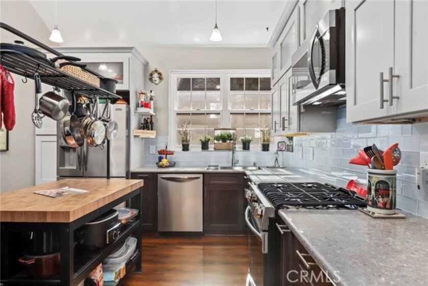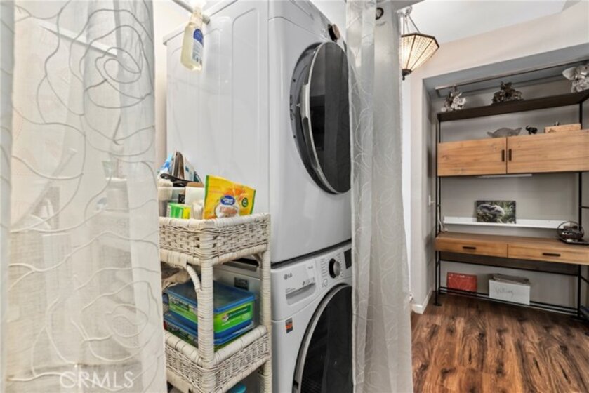 Welcome to Clark Terrace — a rare sanctuary of emerald calm tucked softly into the heart of Long Beach. Perched on the top-floor corner of this beloved community, this 2-bedroom, 2-bath residence with a soaring loft unfolds across 1,790 sq ft of luminous, thoughtfully curated space. Sunlight pours generously through the home, drifting across luxury vinyl plank floors and rising along the custom-crafted double-helix staircase, a sculptural centerpiece that carries you upward to the expansive loft — a retreat for work, creativity, or quiet contemplation.Two private balconies invite you to linger in the hush of rustling leaves and gentle breezes, where the lush green landscape of Clark Terrace feels almost like a secret garden. With a stackable LG washer and dryer in-unit, two parking spaces (including one with an EV charging outlet), and all appliances included (with furniture negotiable), comfort meets convenience at every turn. Life here feels like a resort — peaceful, serene, and beautifully maintained. The community offers a sparkling pool, jacuzzi, sauna, elevator, and tennis court, all set among lovingly tended walkways and abundant foliage. Everywhere you step, there is a sense of care, calm, and quiet luxury. Clark Terrace is more than a home — it is a peaceful refuge, a gentle pause from the world, and a place where nature and architecture meet in harmony.