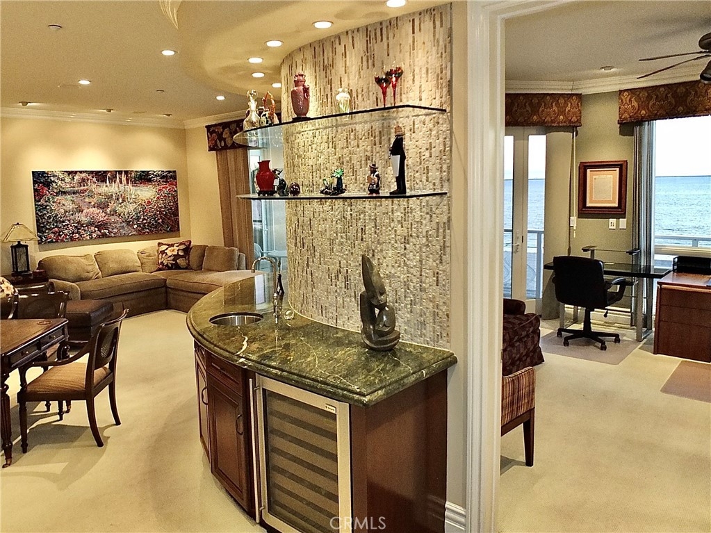 Luxury Living on the Beach! Presenting an extraordinary opportunity to own an exceptional three-level coastal residence within an exclusive custom-built duplex, offered to the market for the very first time. Crafted with timeless design and elevated finishes, this luxury home showcases breathtaking ocean views, refined interiors and the comfort of a shared well-maintained HOA. This meticulously designed home spans three spacious levels, offering privacy and exceptional natural light. From the moment you enter, expansive ocean views of The Pacific unfold across the main living areas. Floor to ceiling windows allow natural light to pour in showcasing the Long Beach coastline in all its beauty. From sunrise to sunset, this home offers a front-row seat of the The Pacific. The heart of the home is the centrally located chef’s kitchen, designed to enhance both culinary experiences and social gatherings. The stunning chef’s kitchen features professional grade appliances, custom cabinetry, expansive granite countertops and backsplashes, a large island with ample storage and open flow to the spacious living and dining area-with spectacular ocean views! Luxurious Primary suite is designed for the ultimate in comfort with captivating ocean views, spacious walk in closets, elegant en-suite bathroom with premium finishes and custom cabinetry. Wake up to ocean breezes and fall asleep to the sound of ocean waves. First level: Lobby level with private elevator, workroom, garage (two and a half spaces) and private, gated beach access. Second level: Two dedicated ocean-view home offices, two guest bedrooms, a guest bathroom, and a great room with sweeping ocean views with private balcony. Additional features include a curved, custom- designed cabinet with wine refrigerator, marble counter tops and glass shelving, along with a second custom-built cabinet providing additional storage or space for a television. Third level: Breathtaking ocean views from kitchen, living and dining area and from primary suite. And a spiral staircase leads to loft retreat that offers ocean views, a flexible retreat for a reading nook, home office or guest bedroom. Bathed in natural light, the elevated area offers a quiet, private escape. This home is a rare blend of luxury, comfort, and coastal beauty, this first-time -on-the market residence represents a truly special opportunity. Whether a primary home or a refined retreat, it embodies elevated seaside living at its finest.