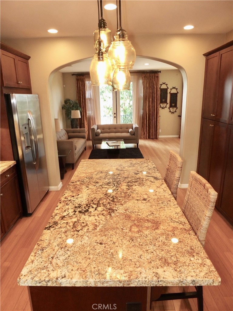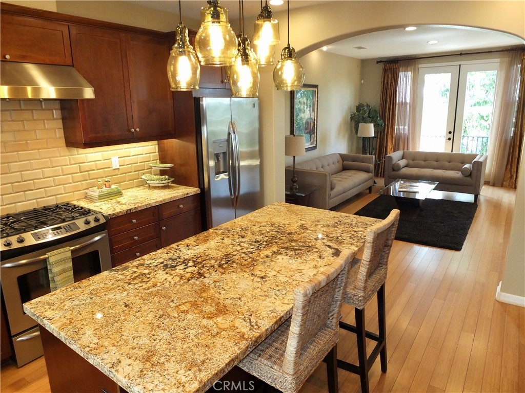 Welcome to the exquisite, gated Cienega community. Beautiful 1920's Spanish Revival architectural style with today's most sought after amenities. Premier south facing unit with dramatic City, Catalina Island and Downtown views! Tri-level 3 bedroom, 4 bath home with almost 2000 square feet of living space with two AC and heating systems. Main floor living room, kitchen and dining area have custom Mannington Bamboo flooring. Gourmet Kitchen with Island, stainless appliances, granite counters, recessed lighting and stunning lighting fixture. Adjacent Laundry room with Italian granite flooring. Third floor houses master suite with luxurious soaking tub with custom tile work and double vanities. Additional bedroom and bathroom on third floor. Perfect mother in law/ guest bedroom on 1st floor with bathroom and full storage area. Additional amenities include double pane windows, water softener & filtration system, stair lighting, recessed lighting, home security system, Kohler toilets and sinks throughout, plantation shutters, high tech speaker wiring, customized slider screens plus so much more. Double car attached garage. Enjoy the outdoors on one of the 2 balconies plus beautifully landscaped courtyard with built in bbq and fireplace area. Truly a must see!!