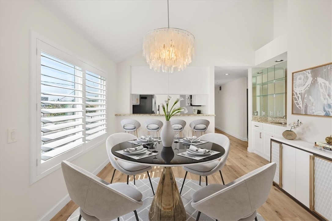 This charming corner unit condo offers a spacious layout with 2 bedrooms, 2 bathrooms, and a versatile flex space perfect for your home office. At 1019 square feet, this condo provides ample room for living, working, and entertaining. You'll love the private patio, perfect for unwinding. The unit boasts newer laminate flooring and newly added double pane windows with custom shutters that flood the space with natural light. The unit offers in-unit laundry, a rare find at this price point! Parking will never be a hassle with two garage spaces and assigned parking. Enjoy the convenience of central AC and heat, as well as the communal pool and spa. The monthly HOA covers water, trash, internet, and cable, providing ease and value. Plus, this pet-friendly building is FHA and VA approved, offering flexibility and convenience. Don't miss out on this rare find with its open floor plan and desirable amenities. Make this condo your own and experience the best of Long Beach living!