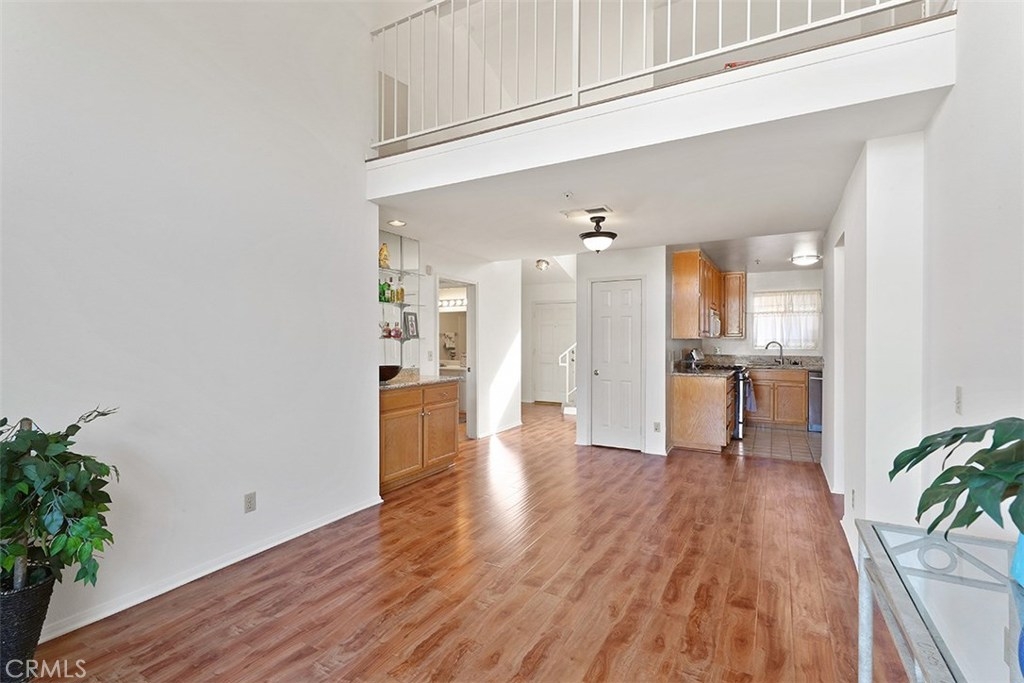 There is so much light and space in this gorgeous two bedroom condo -- you will never feel cramped. From the moment you step through the door at 1775 Ohio #415, the spacious and elegant atmosphere draws you New laminated floors connect the entryway with the spectacular living room. The two-story ceiling feels even higher with the flood of natural light pouring in through the sliding glass doors that lead to the private patio. The fireplace and small wet bar with glass backsplash add a sense of modern eloquence. This room is perfect for entertaining guests. The patio is the length of the condo and features a second entrance from the master bedroom. There is more than enough room for outdoor relaxing and dining. The nearby kitchen offers ample cabinet and counter space, as well as a a dining nook and a laundry closet. The first thing you notice in the master bedroom is the grandiose ceiling and the torrents of natural light from the sliding glass door. Plush carpet covers the floor. The attached bathroom features a double vanity and plenty of privacy. The other bedroom is also roomy with carpeted floors and generous closet space. The versatile loft area upstairs can be used as an office, work-out space, or guest quarters.