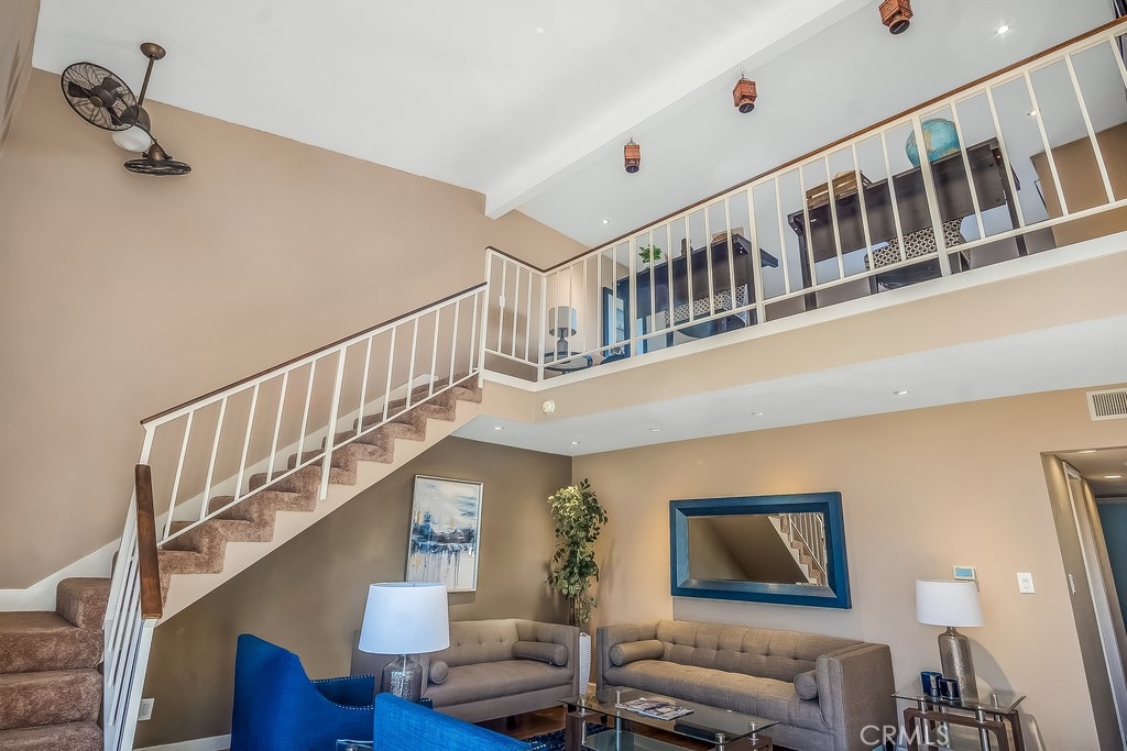 Two blocks to the beach and across from Bixby Park with a peek-a-boo ocean view thru the trees, this top floor penthouse style condo with a high vaulted ceiling in the living room and a wall of southern exposure windows has it all. Ascend the stairs up to a large 300+ sq ft loft that overlooks the living and dining room and step though the sliding glass doors to another ~300 sq ft of outdoor living space on your private rooftop deck with mountain and city light views. The en suite Master Bath boasts a large walk in shower, double vanity and plenty of storage. Other notables include engineered Bamboo Hardwood Floors throughout the main floor living/dining rooms, entry and kitchen, Central Air/Heat, Laundry (washer and dryer in loft), a large walk-in Attic space (accessible from the loft) and 2 separate Parking Spaces with individual storage cabinets in the garage. New Samsung Refrigerator (~1-year old), small Vinotemp Wine Fridge as well as front-load Samsung Washer & Dryer are included. HOA dues include water (cold/hot), trash & recycling pickup, property management and basic fiber internet (installation due to complete mid 2021). The building is also across the street from the perennial farmers market, large dog park and very close to many neighborhood restaurants and shops as well as the bluffs and beach path.