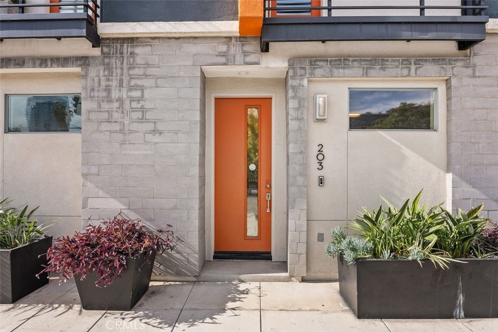 Welcome to 203 Elm Ave! This super stylish 2-bedroom 2.5 bath contemporary townhome situated in the chic Huxton building, beach close& in the heart of the thriving East Village Arts District, offers Urban Living at its best. Newly built in 2019, this amazing property lives like a single-family residence with 3 levels of sublime living space, which also includes a rare single car garage with direct access into the unit! The main floor features a Great Room with soaring ceilings & custom laminate wood flooring flowing throughout; the kitchen is stunning & well-appointed with designer cabinetry, white Quartz counters and luxurious appliances adjacent the light filled dining & living areas. A wonderful primary bedroom with en suite bath highlighted by dual sinks, sleek counters, glass enclosed shower and double closets grace the middle level along with a laundry closet with stackable washer & dryer! The top floor encompasses a 2nd spacious bedroom with a sweet balcony offering captivating city views along with another beautiful ¾ bath. Common areas are comprised of a fantastic clubhouse overlooking a peaceful garden and a serious bike room right off the street for easy access to all this culturally diverse city has to offer. Enjoy charming coffee shops, hip shopping, unique dining, great theater, museums, and the waterfront just a short distance from this special residence. CHECK OUT THE 3D TOUR!