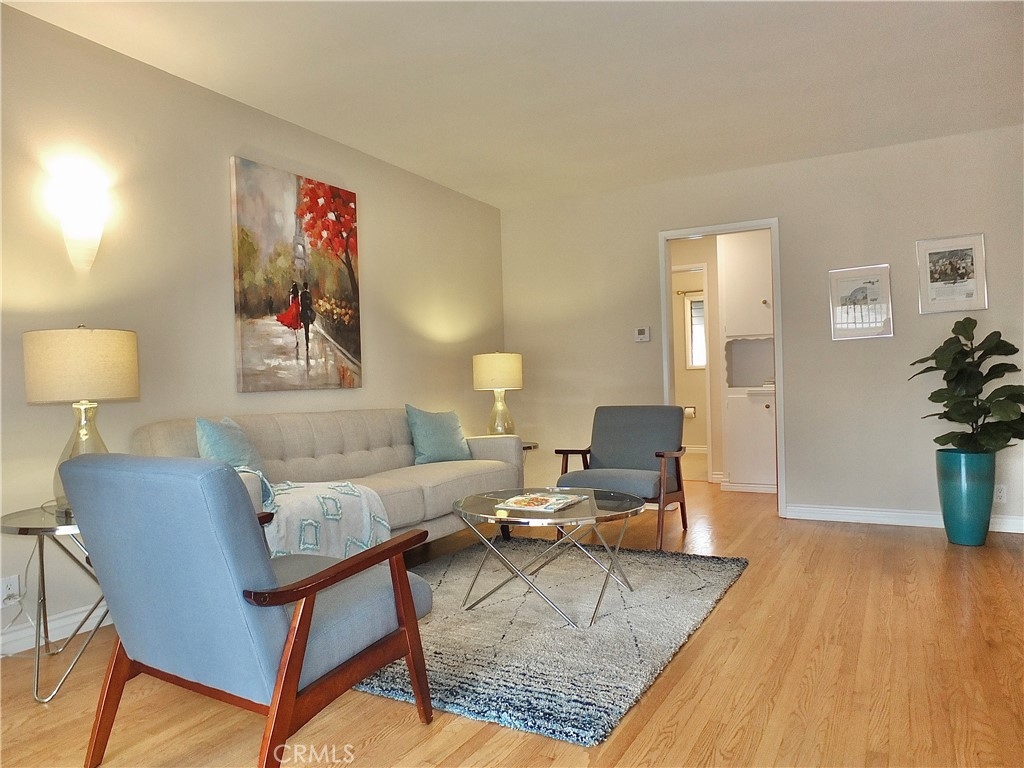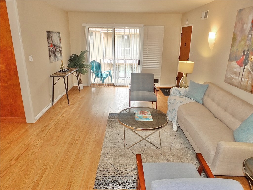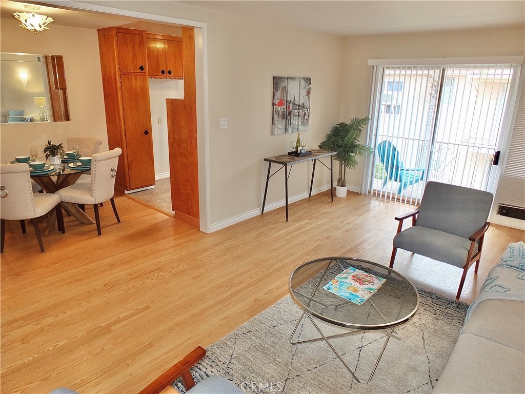 Well located and maintained Top Floor one bedroom one bath condominium with private one car garage. Unit has lots of windows that allow for natural light and ocean breezes. Beautiful Oak flooring in living areas and bedroom. Spacious living room has sliding glass door that leads to a Balcony overlooking courtyard. Separate Dining Area is located off the kitchen and has a Pantry Closet. Spacious Bedroom with large window, a double wardrobe closet plus a single closet. Hall features more storage cabinets. On-site common Laundry area is just downstairs close to the unit. There is also an additional Common Area Storage Closet at stairwell landing leading to the unit (where the forced air heater for unit is). PLUS, you have your own private one-car Garage with a garage door opener! Low HOA Dues and Pet Friendly Building (1 cat or 1 small/medium dog ok – Buyer to confirm to their own satisfaction). Quaint Belmont Heights location adjacent to Alamitos Beach - Located a couple blocks to Bixby Park with a farmers market every Saturday, plus summer concerts and movies in the park. Another block to Bluff Park overlooking the ocean where there are free yoga classes. Just a short walk to Hot Java, Park Pantry and a couple blocks the other direction to 4th Street Retro Row with some of the best restaurants and unique shops in Long Beach!