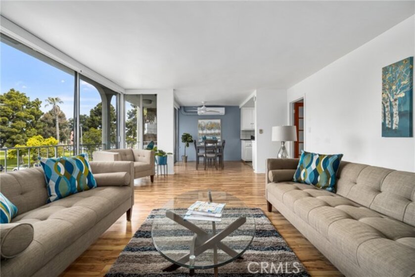 Feel like swimming at the beach, playing in the park, shopping, dining out, visiting an art museum, or doing some yoga? You can say YES to all of these things and be minutes away if you own this beautiful condo. This 2 bedroom 2 bathroom condo located in the historic Bluffs Park neighborhood, is literally a short walk, skip, or run to the beach (2 blocks), steps to Bixby Park, and a short walk to Broadway & Retro Row for shopping or dining. This condo features a large front room with oversized windows, separate dining area with a lovely balcony to relax & unwind while enjoying your park view and ocean breeze. Additionally, this condo has a newly installed wall AC unit, newly tiled kitchen floors, new window coverings and plantation shutters in bedrooms, freshly repainted, smoothed ceiling, and three ceiling fans. This complex is in a controlled-access building with subterranean & secured parking, with one assigned parking spot w/overhead storage. The low HOA dues covers trash, water, and exterior insurance coverage. In addition to the condo’s proximity to the beach, you can also enjoy the park’s many activities such as, picnic areas, dog park, fitness loops, playground, farmer’s market, or yoga on the Bluff. Come check it out and put a ring on it before it’s gone.